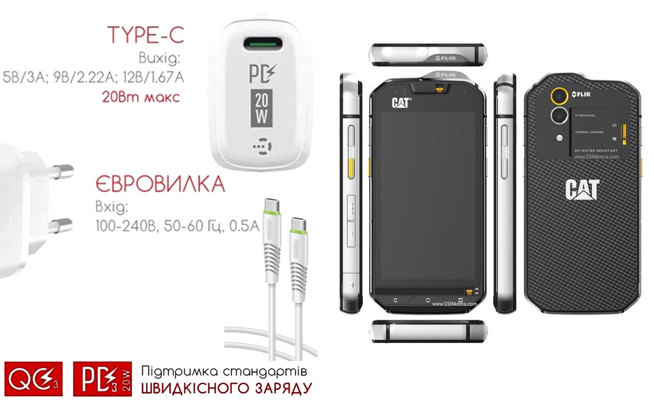 Quick Charger 20W 3A для смартфона CAT S60, Быстрая зарядка
