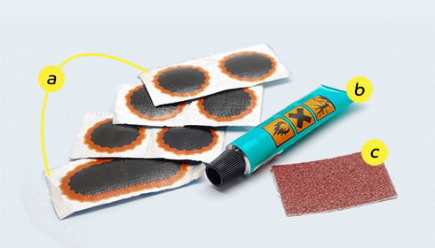 Минимальный комплект для заклеивания камеры включает заплатки