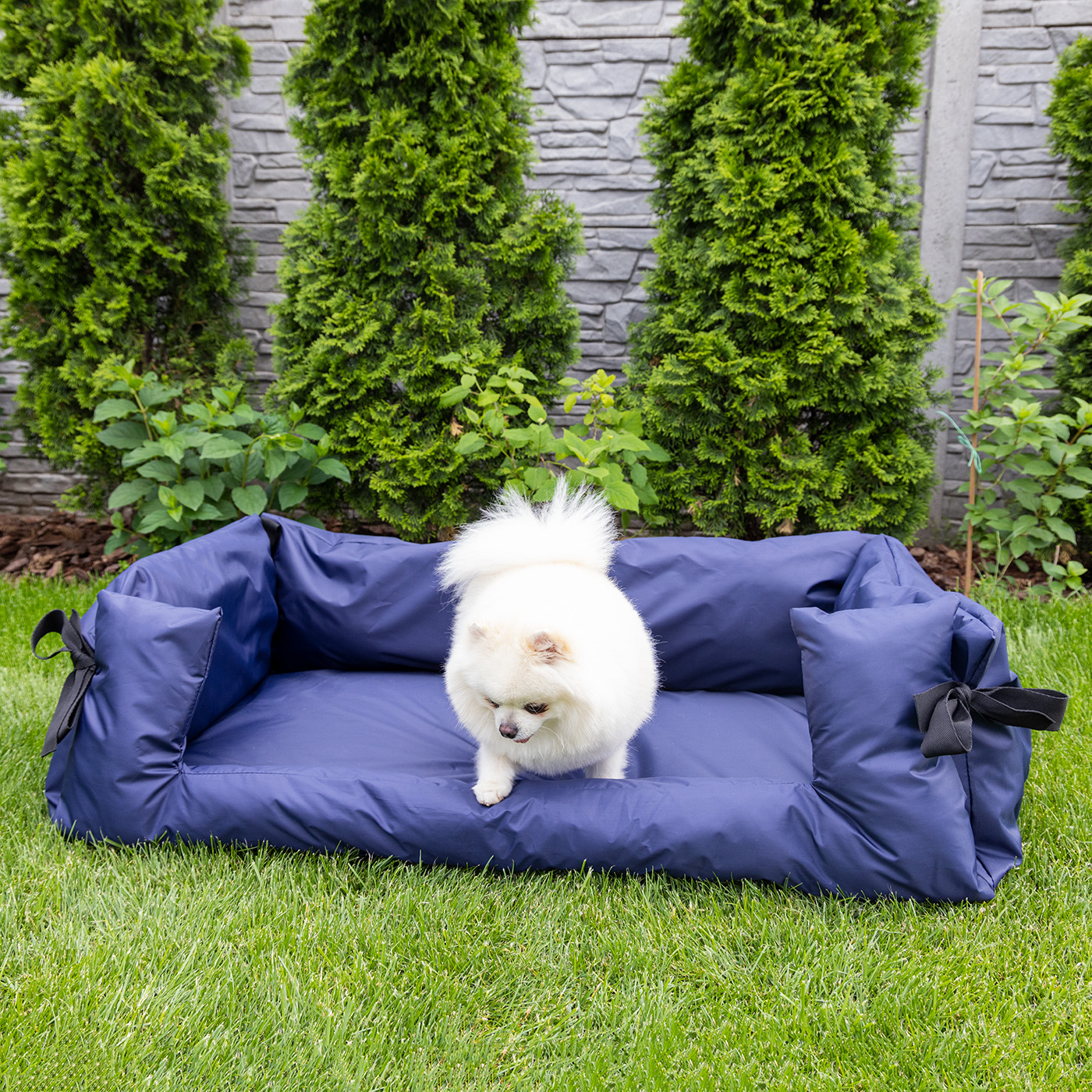 Материал лежака легок в уходе. К лежаку не пристает шерсть, а влагоотталкивающей ткань не впитывает грязь, воду или слюну питомца. Достаточно просто протереть его влажной тряпкой или губкой.