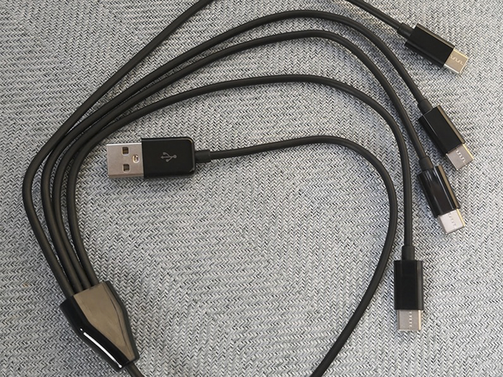 Кабель для зарядки 4 в1 USB на Type-C 50 см - благодаря такому кабеля Вы сможете зарядить сразу 4 гаджета. Хватит чтобы зарядить смартфоны всех членов семьи.