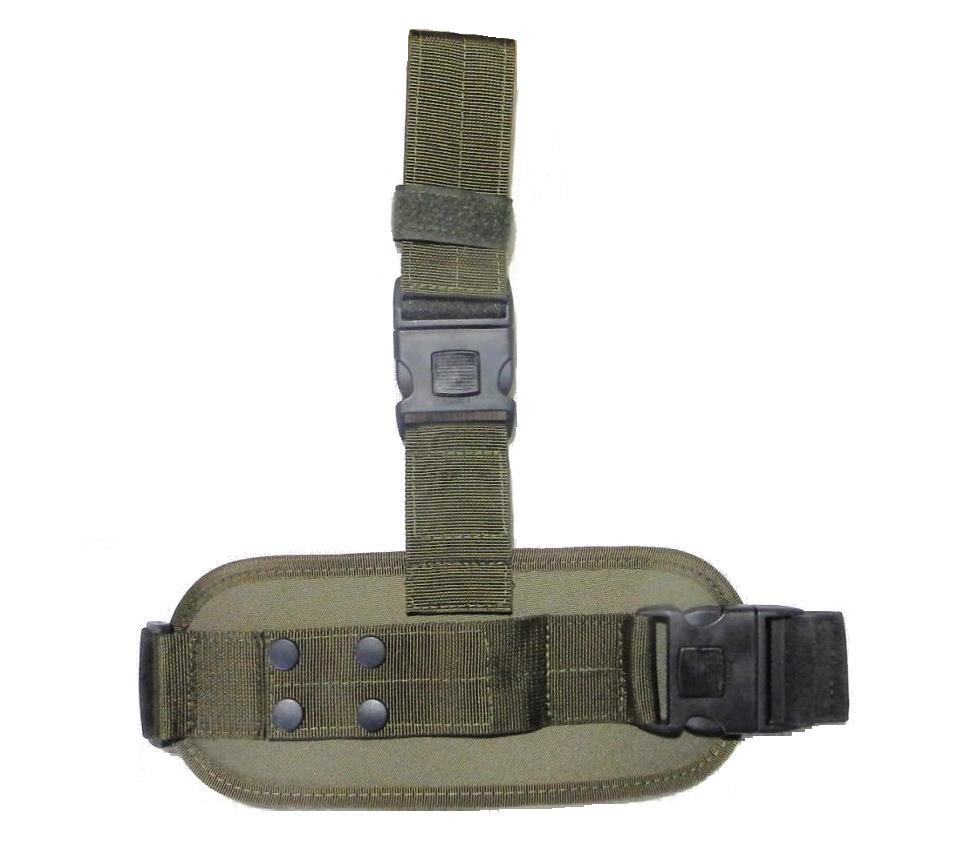 Предназначена для ношения кобуры на бедре. Платформа изготовлена из синтетических материалов. Ткань лицевого слоя - Oxford 600D, средний слой - эластичный пластик, изнаночный слой - вспененный синтетический материал с велюровым покрытием. К бедру платформа фиксируется при помощи плотной резинки шириной 50 мм, с регулируемой длиной. Резинка застёгивается на пластиковую пряжку-фаст с замком. К поясному ремню платформа фиксируется петлёй из полиамидной стропы с нашитой лентой велкро (липучкой). Липучка на стропе позволяет регулировать положение платформы по вертикали. К верхней стропе платформа также пристёгивается на пряжку-фаст с замком. Кобура фиксируется на платформе в одном положении - вертикально, одевается на полиамидную стропу, пришитую к платформе с одной стороны. С другой стороны стропа надёжно застёгивается на четыре кнопки. Дополнительную фиксацию кобуры обеспечивает лента велкро (липучка), нашитая на стропу.