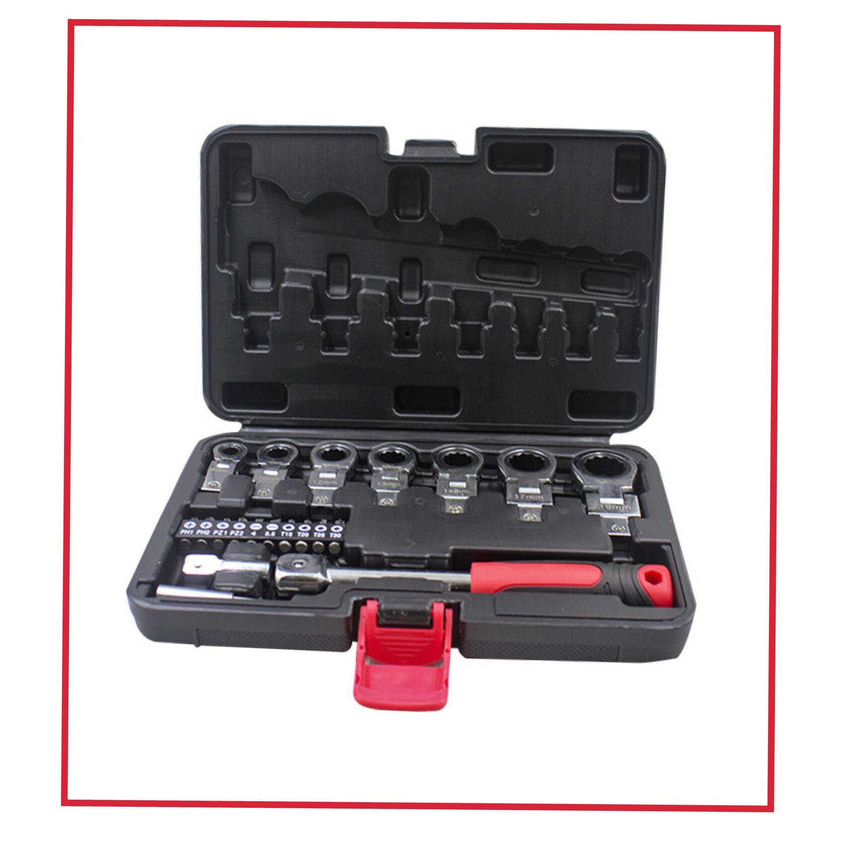 В кейсе все насадки и ключи имеют свое место, так что вам не придется искать среди кучи инструментов нужный размер биты или ключа