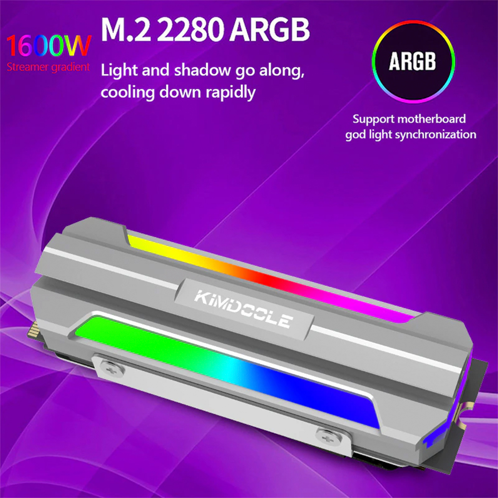 Радиатор Kimdoole для М2 2280 с подсветкой ARGB - это медно-алюминиевый композитный радиатор для ssd типа M2 2280.