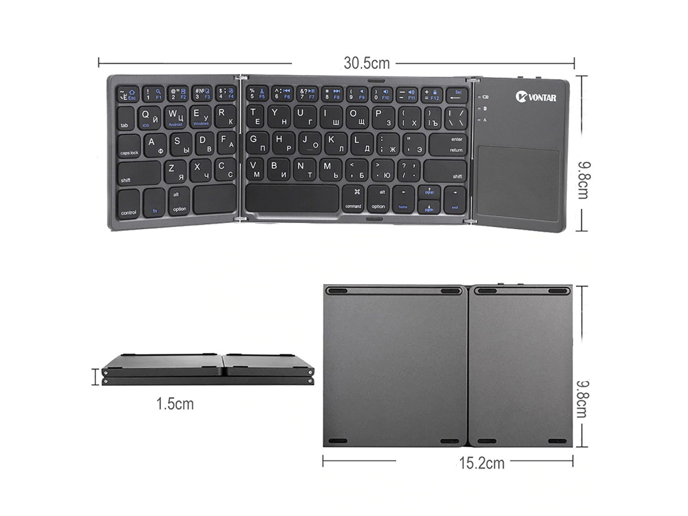 Міні клавіатура Bluetooth з тачпадом для IOS Android Windows портативна складна Артикул: 1009-020-00