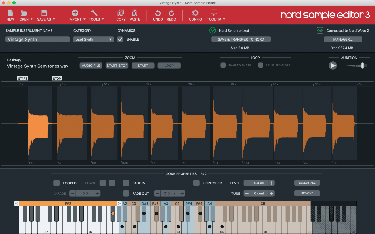Додавання власних власних інструментів для семплів ще ніколи не було таким простим завдяки новому спрощеному редактору Nord Sample Editor 3 для Mac і Windows, який дозволяє миттєво відображати, зациклювати та передавати семпли на Nord Wave 2.