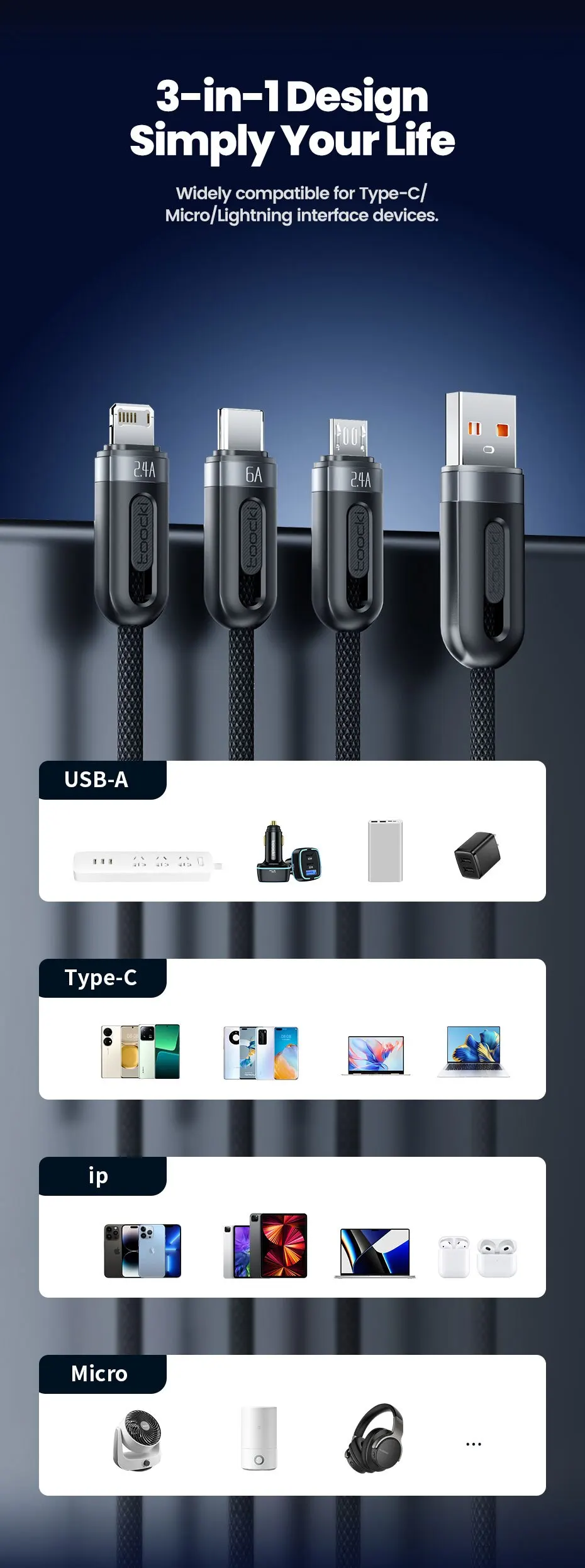 Apple Lightning + microUSB + Type-C