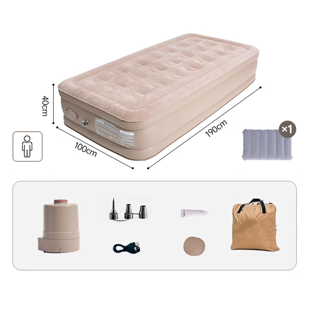 Матрас самонадувной Camp Zoom одинарный - представляет собой надувную кровать, которая сочетает в себе удобство и функциональность для тех, кто нуждается в дополнительном спальном месте. Кровать имеет встроенный насос для легкого и быстрого надувания. Мягкая бархатистая поверхность обеспечивает дополнительный комфорт во время сна, а прочная конструкция способствует равномерному распределению веса, минимизируя риск провисания и обеспечивая стабильность. Кровать выполнена в приятном нейтральном оттенке, который легко вписывается в любой интерьер. Этот вариант идеален для временного размещения гостей или использования в походных условиях благодаря своей портативности и удобству хранения.