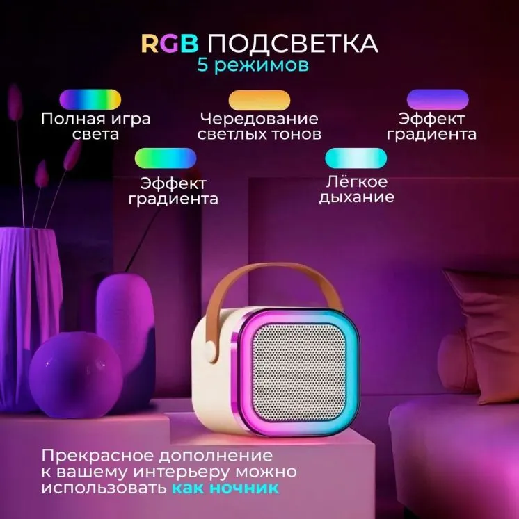 Представляем вам уникальную портативную музыкальную колонку идеальную для домашних вечеринок и праздников для детей и взрослых. Эта мощная колонка оснащена передовой технологией Bluetooth, позволяющей легко подключить ее к вашему компьютеру, ноутбуку, смартфону или планшету для потокового воспроизведения музыки высочайшего качества. Система обладает встроенными динамиками, создающими чистое и мощное звучание . Функционал караоке с двумя микрофонами делает эту колонку отличным выбором для семейных вечеров и музыкальных игр. Эта портативная мини-колонка с подсветкой легкая и компактная, идеальна для использования как дома, так и на природе, например, на пикнике. С возможностью работы от аккумулятора и поддержкой USB и TF-карт, вы сможете наслаждаться музыкой без ограничений. Громкая и небольшая, данная колонка станет прекрасным подарком как детям, так и взрослым. Поддержка 3,5мм разъема jack дает вам возможность подключить любое аудиоустройство. С флешкой и возможностью работы от юсб, эта аудиосистема станет незаменимым спутником для вашей музыки в любое время и в любом месте. Теги:Детскя электроника, мини подарки, караоке для дома, колонка светящаяся, переносная, большая, колонка музыкальная, колонка беспроводная.