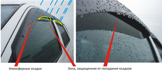 2. Предотвращают попадание дождевых капель или снега в салон автомобиля при приоткрытых окнах.