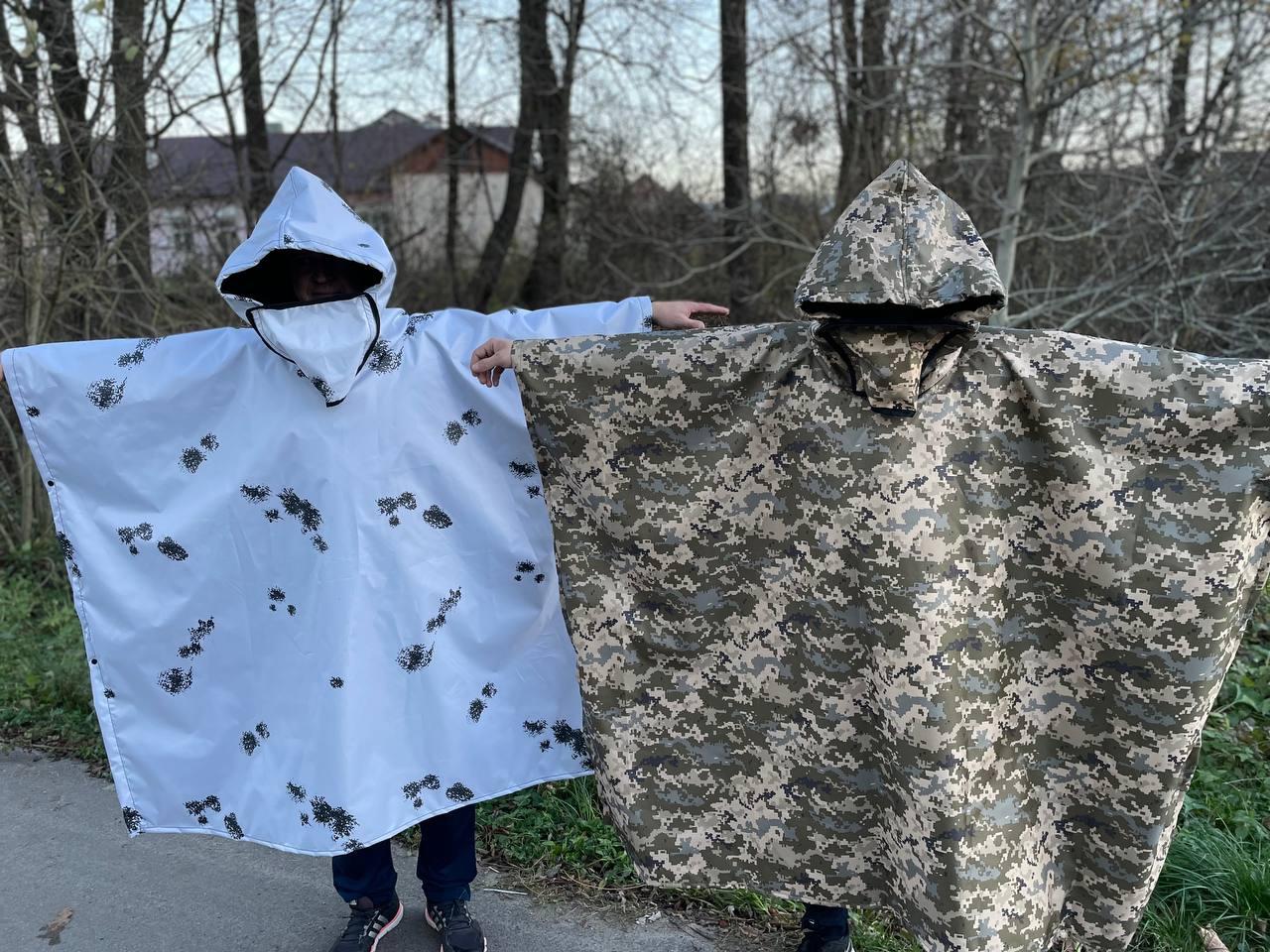Плащ пончо анти-тепловизор двухсторонний Пиксель подкладка Белая клякса для маскировки DM-11