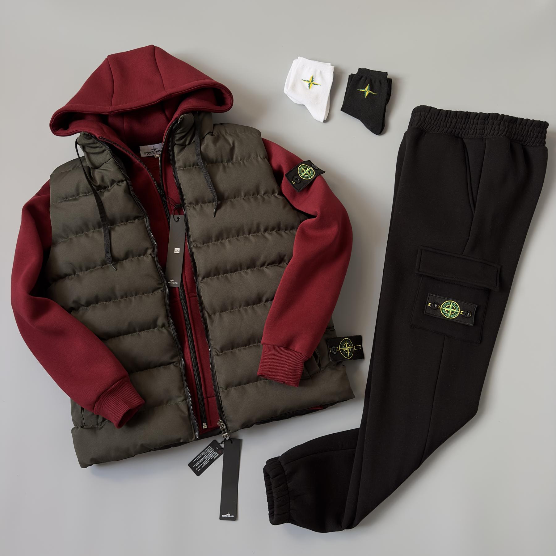 Зимний набор Stone Island жилет худи штаны 2 пары носок в подарок унисекс BZN