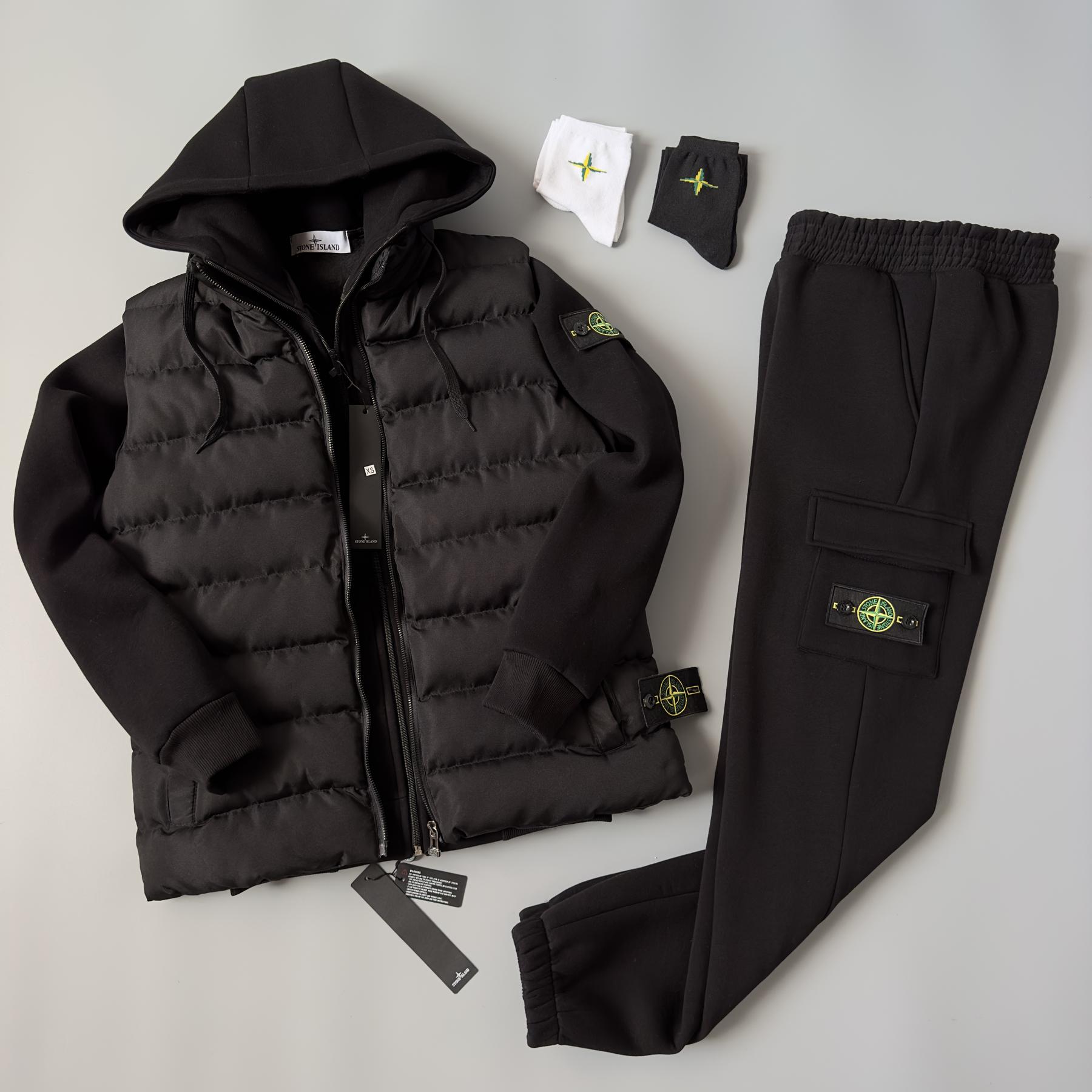 Зимний набор Stone Island: жилет, зип худи, штаны, 2 пары носок в подарок.