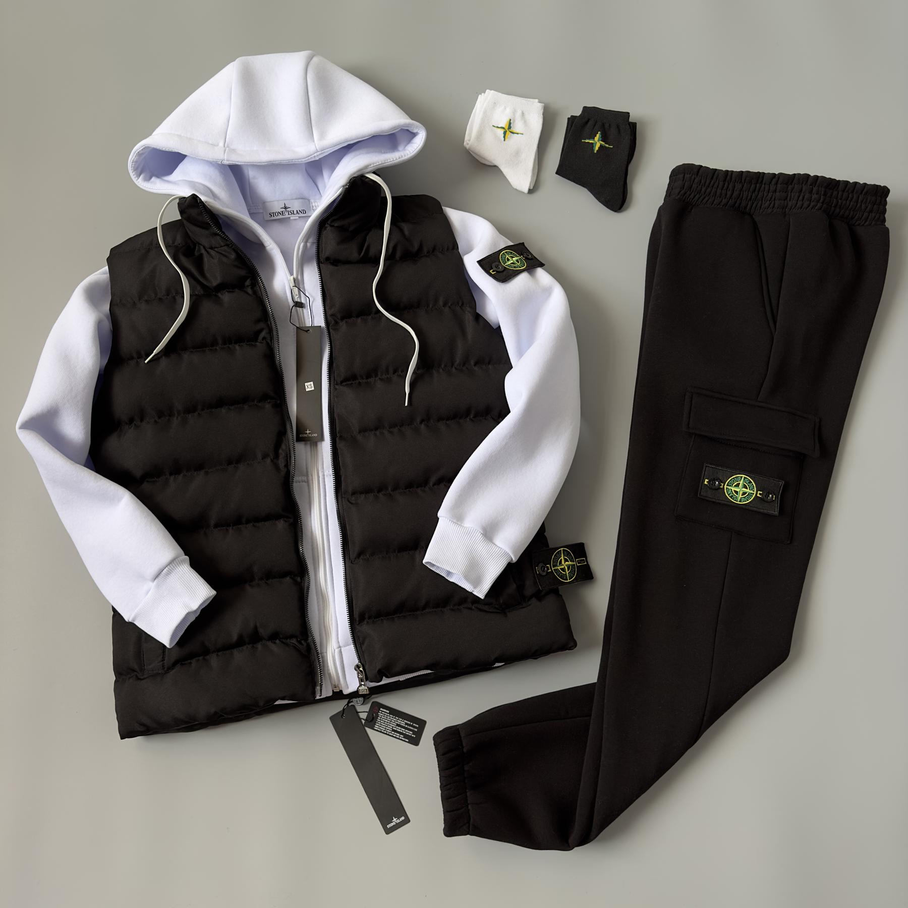Зимний набор Stone Island жилет худи штаны 2 пары носок в подарок черный белый хаки бордовый BZN