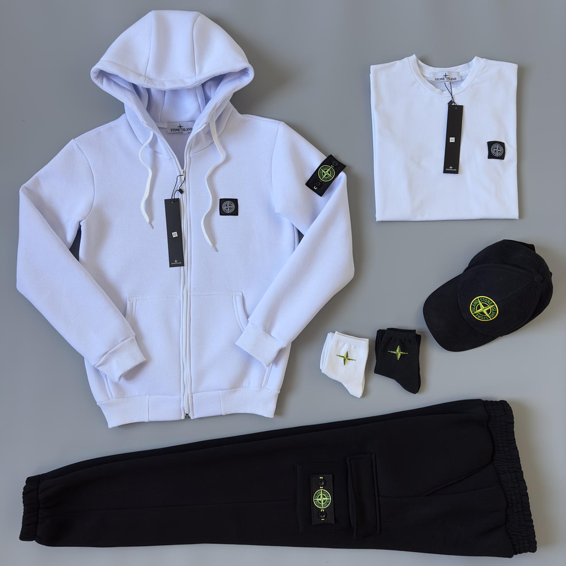Зимний набор SI белый зип-худи штаны футболка кепка для активного отдыха BUV