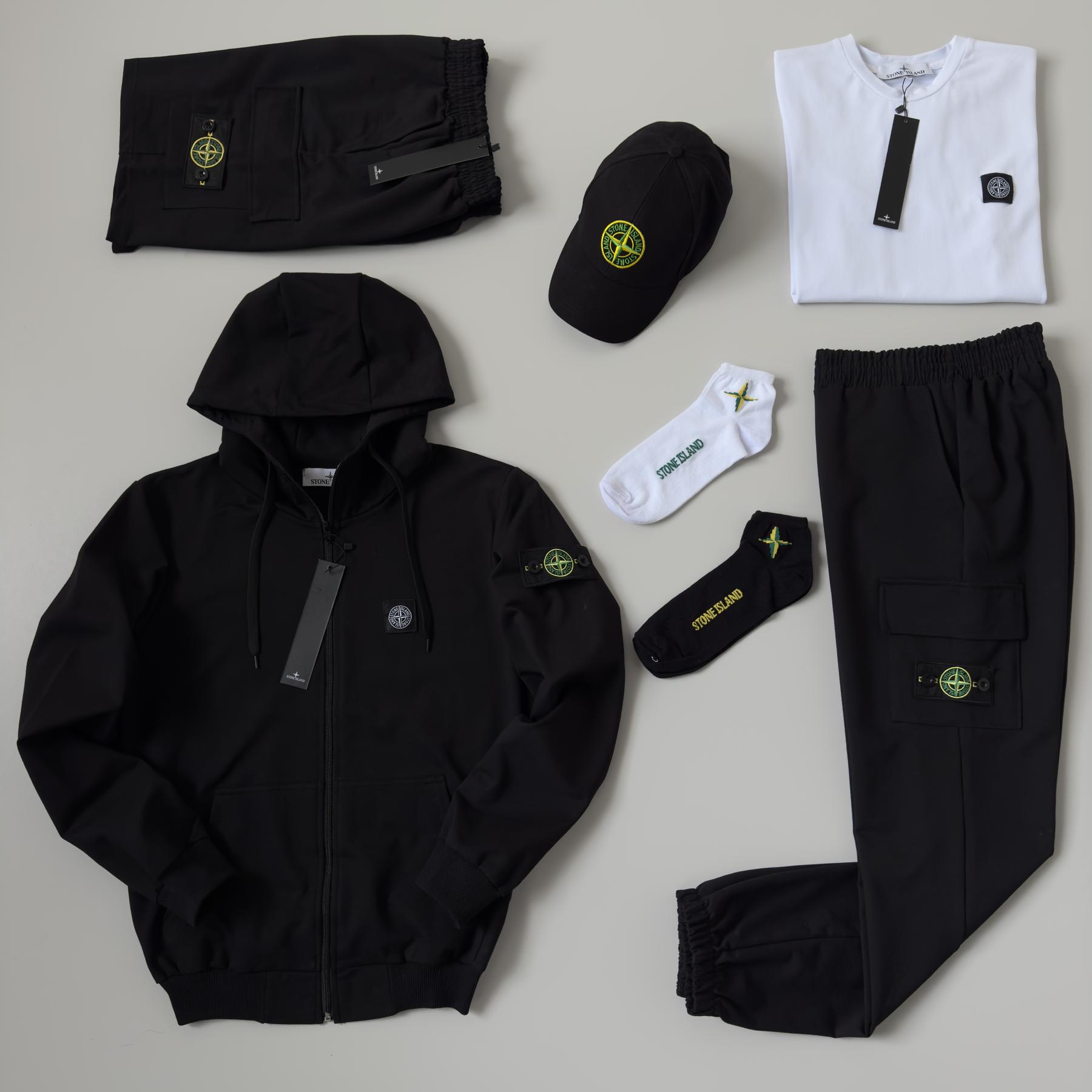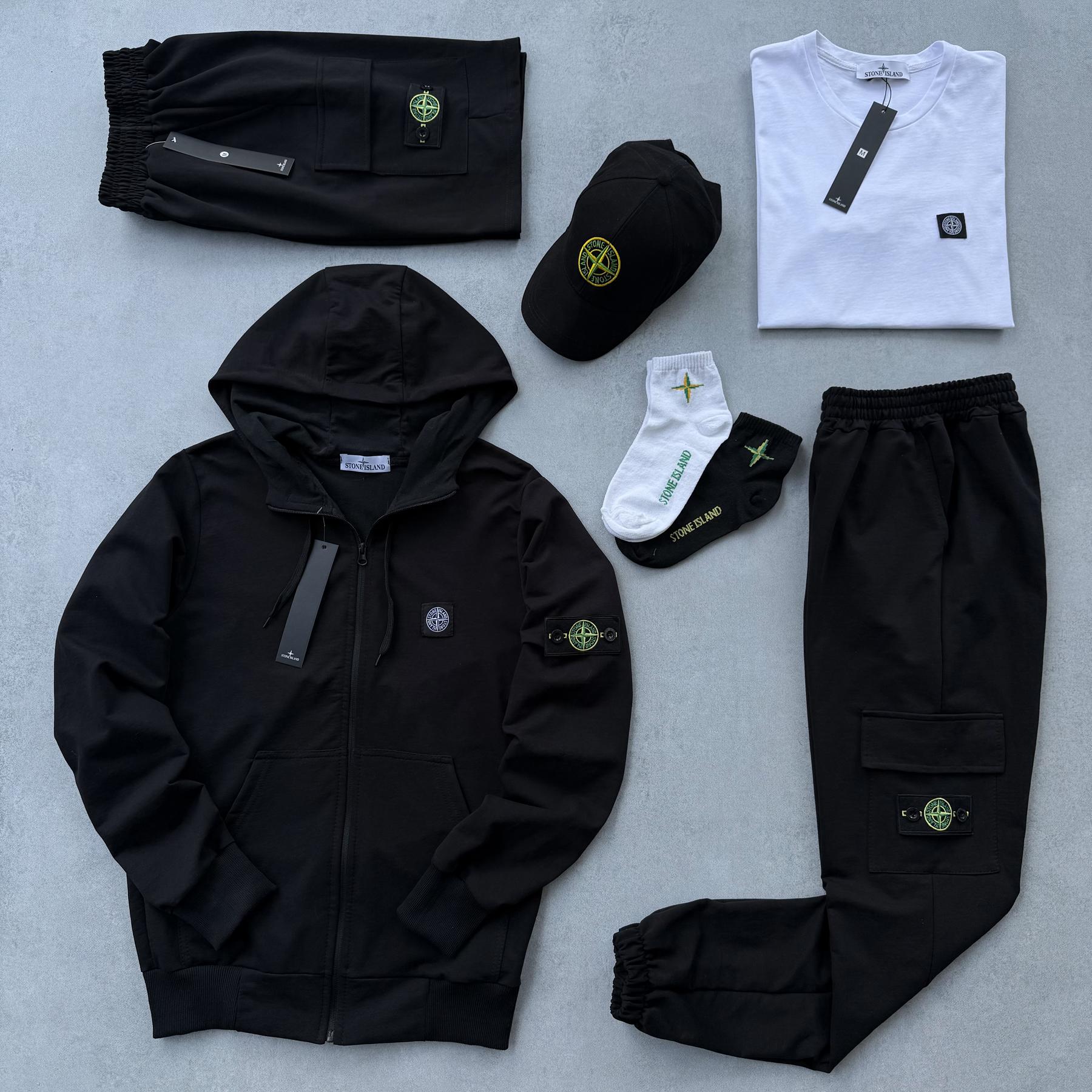 Набор 7в1 Stone Island черный худи штаны футболка шорты кепка 2 пары носок BUV