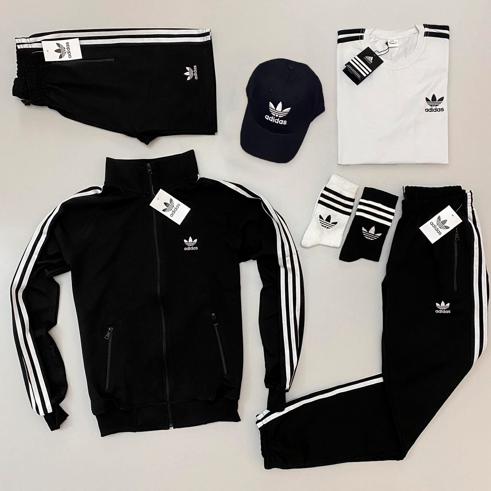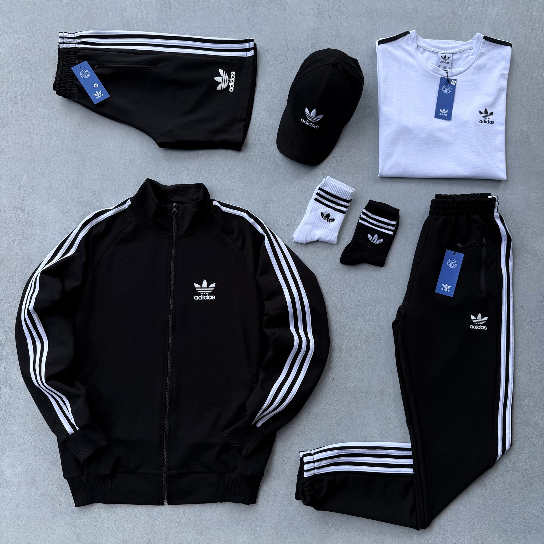 Набор 7 в 1 Adidas черный с белой футболкой кофта штаны шорты кепка носки 2 пары BUV