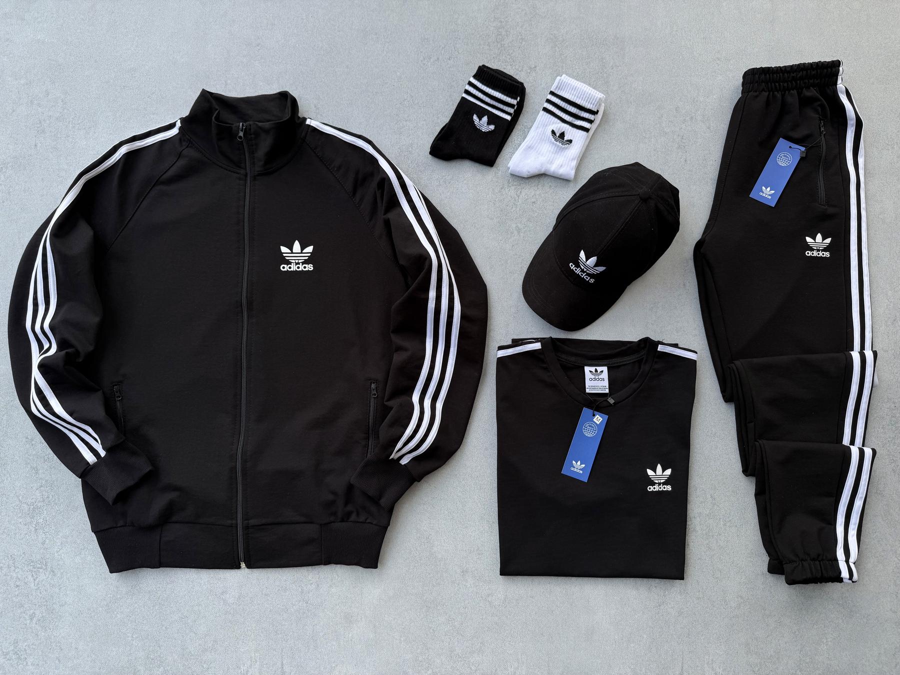 Набор 4в1 Adidas кофта штаны футболка кепка черный красный белый синий Турецкая двунитка осень весна лето BUV