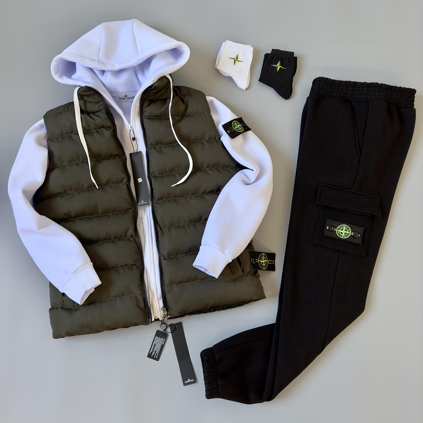 Зимний набор Stone Island жилет худи штаны 2 пары носков в подарок унисекс BUV