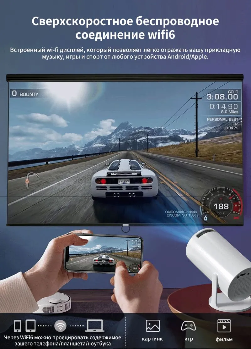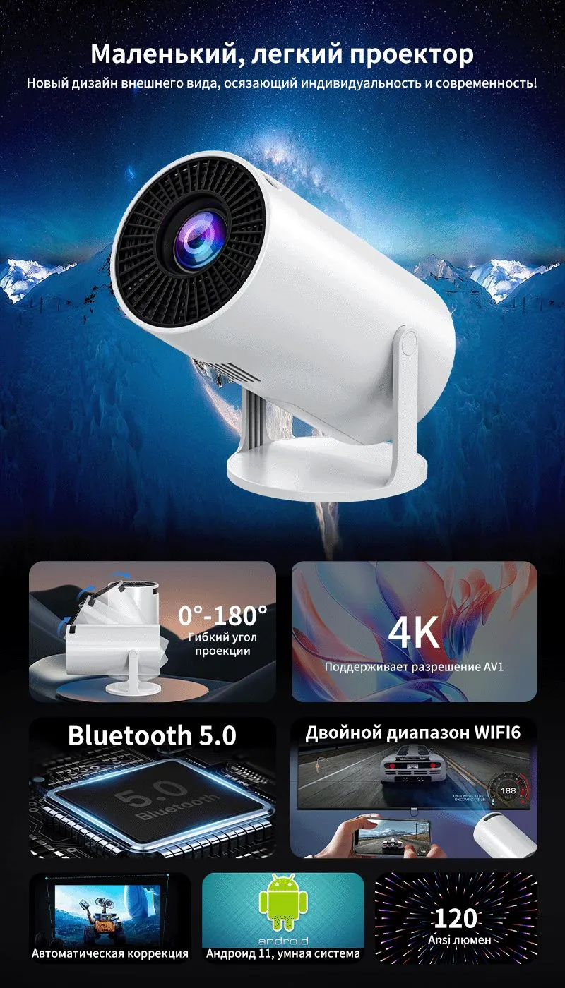 Смарт проектор c 2 джойстиками + Карта 64Гб, 4К, HY300 PRO M...