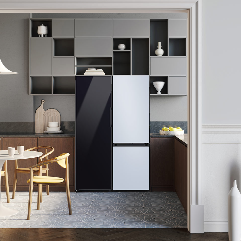 Серия Bespoke позволяет подключать два или более устройств одинаковой высоты. Поставьте однодверный холодильник рядом с однодверной морозильной камерой и у вас будет достаточно места для любого продукта или готового блюда.