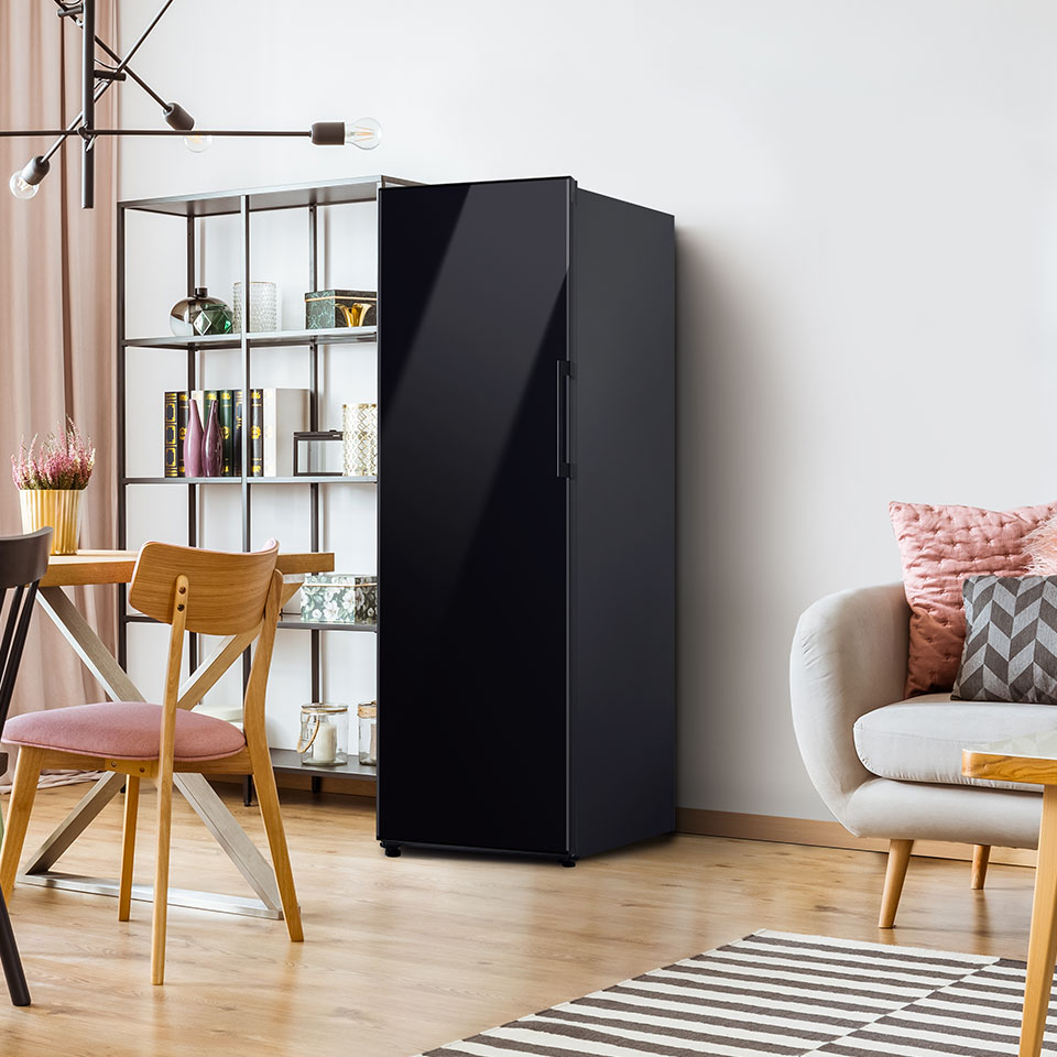 Хотите, чтобы ваша кухня впечатляла выдержанным стилем и совершенным дизайном? Ассортимент морозильников Bespoke позволяет выбирать из широкого спектра цветов и текстур. Модель Samsung RZ32C76CE22 по умолчанию имеет двери глубокого черного цвета, которые идеально впишутся в современный интерьер. Если вы захотите поменять фасад сейчас или в будущем, вам не придется покупать другое устройство – достаточно установить новую панель. Морозильник Bespoke сочетает в себе долговечность и функциональность, и в то же время может меняться в зависимости от вас и стиля вашего дома. Наслаждайтесь индивидуальным решением серии Bespoke.