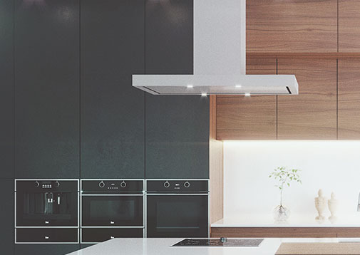 Цвет стали подчеркивает красоту современного дизайна вытяжки. Ваш интерьер приобрел еще один стильный акцент.