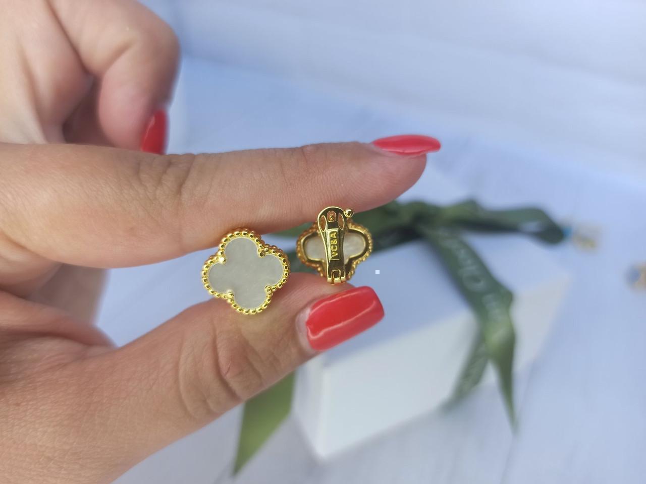 | Сережки ван клиф брендовые клевер листик английский замок белое золото Шарики Van Cleef |