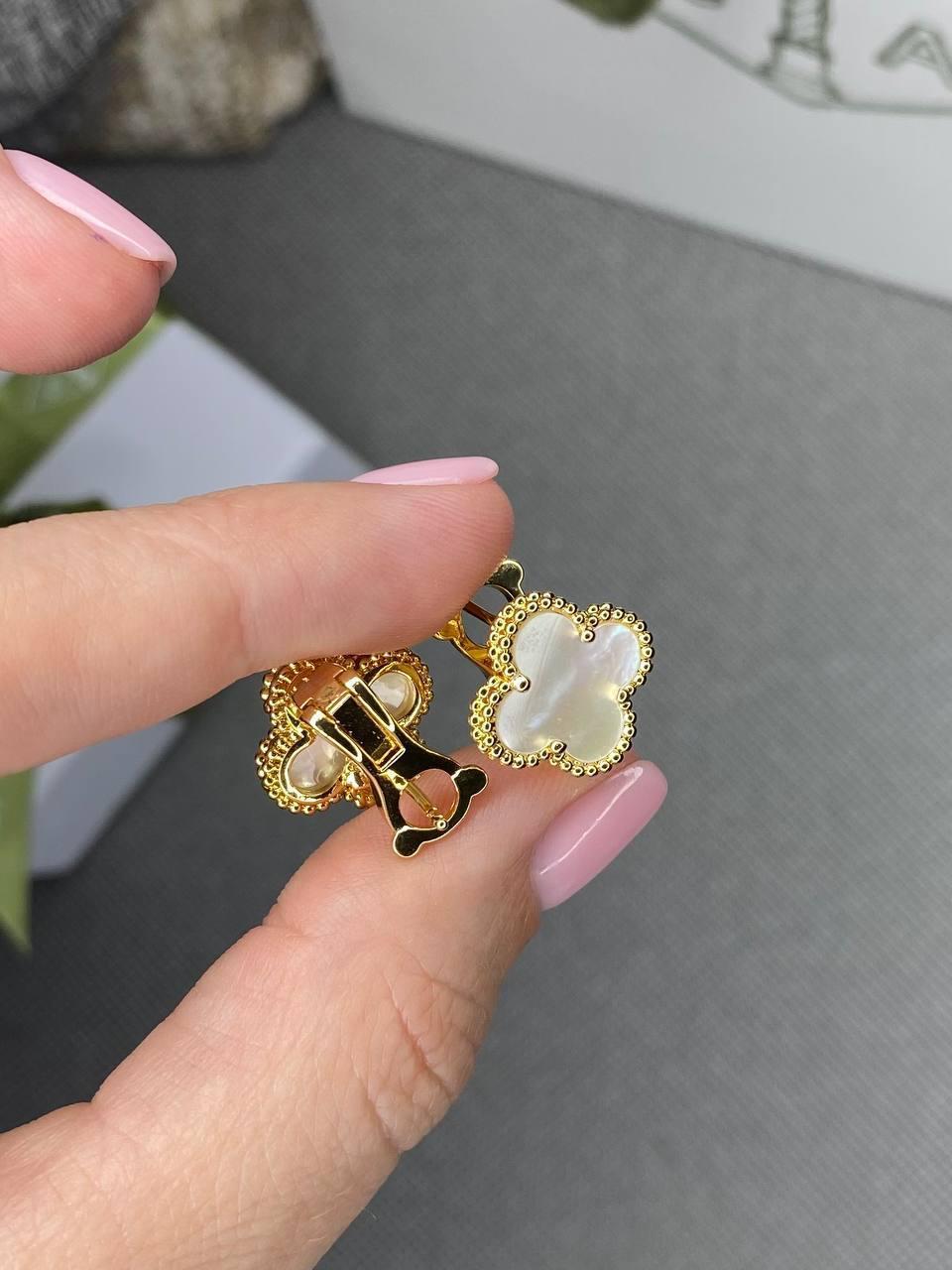 | Сережки ван клиф брендовые белый перламутр клевер листик английский замок женские Шарики Van Cleef |