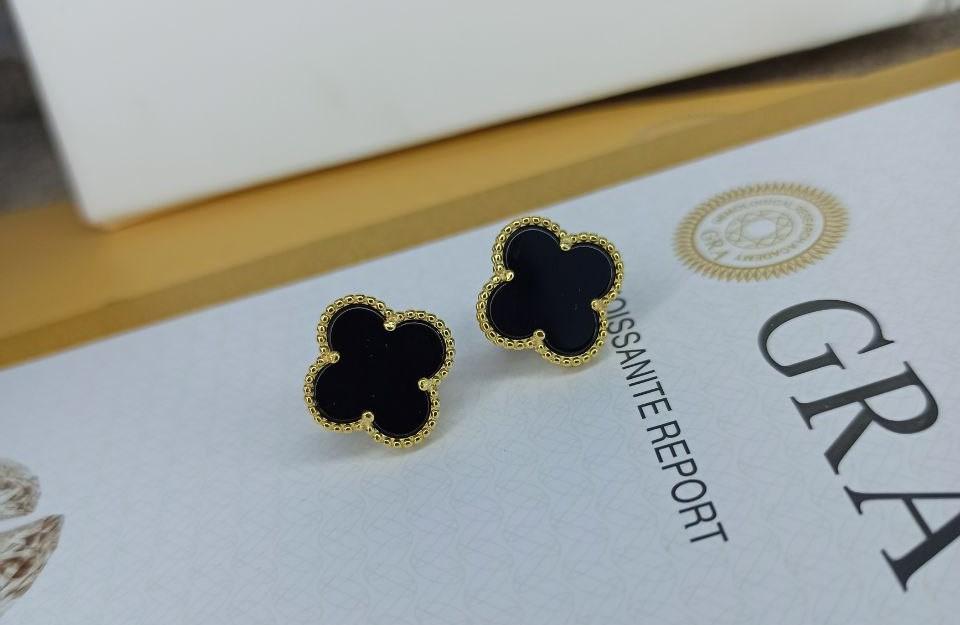 | Сережки ван клиф брендовые клевер листик английский замок черный онокс Шарики Van Cleef |
