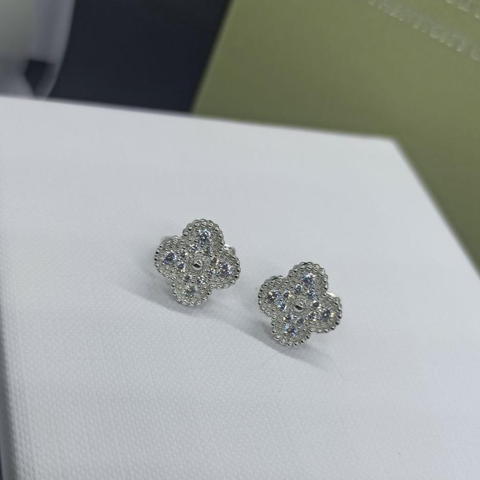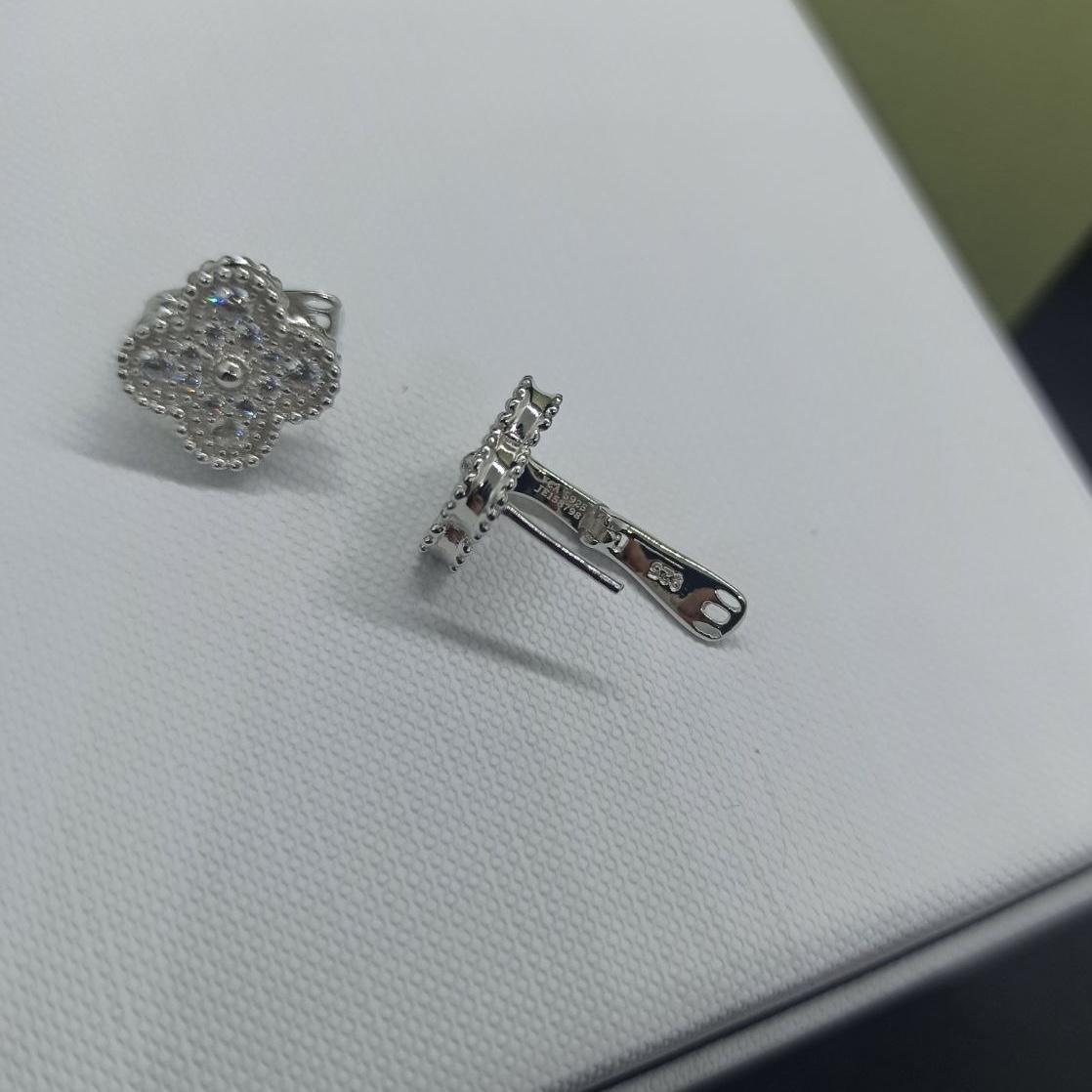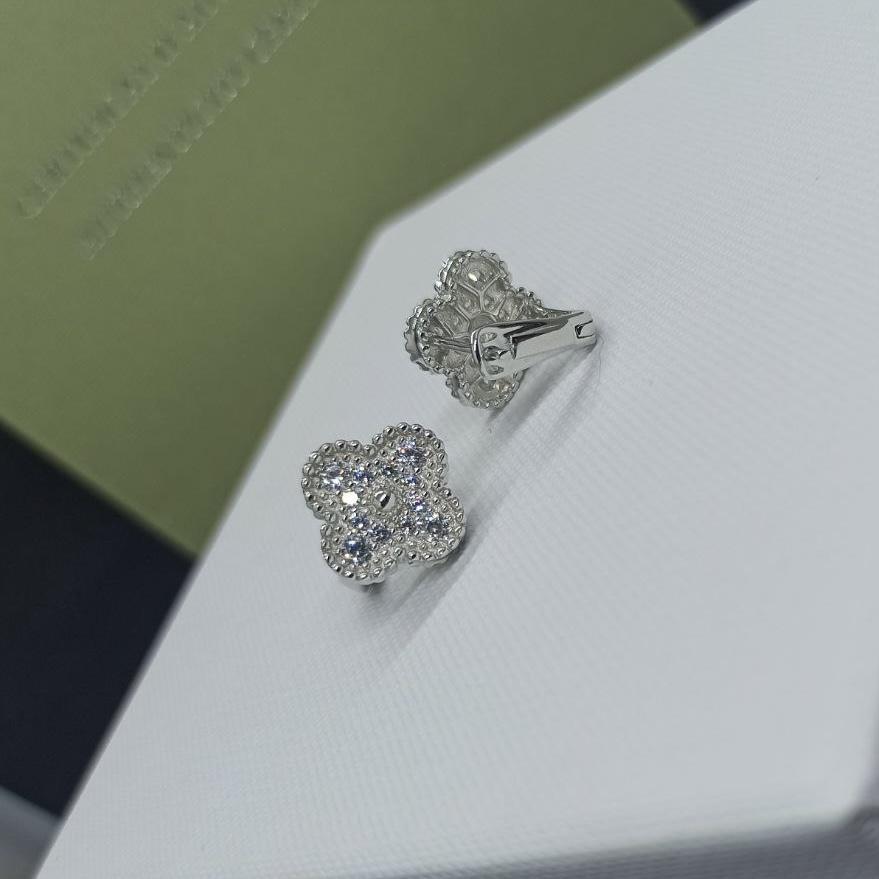 | Сережки ван клиф брендовые клевер листик английский замок в кристаллах серебристые Шарики Van Cleef |