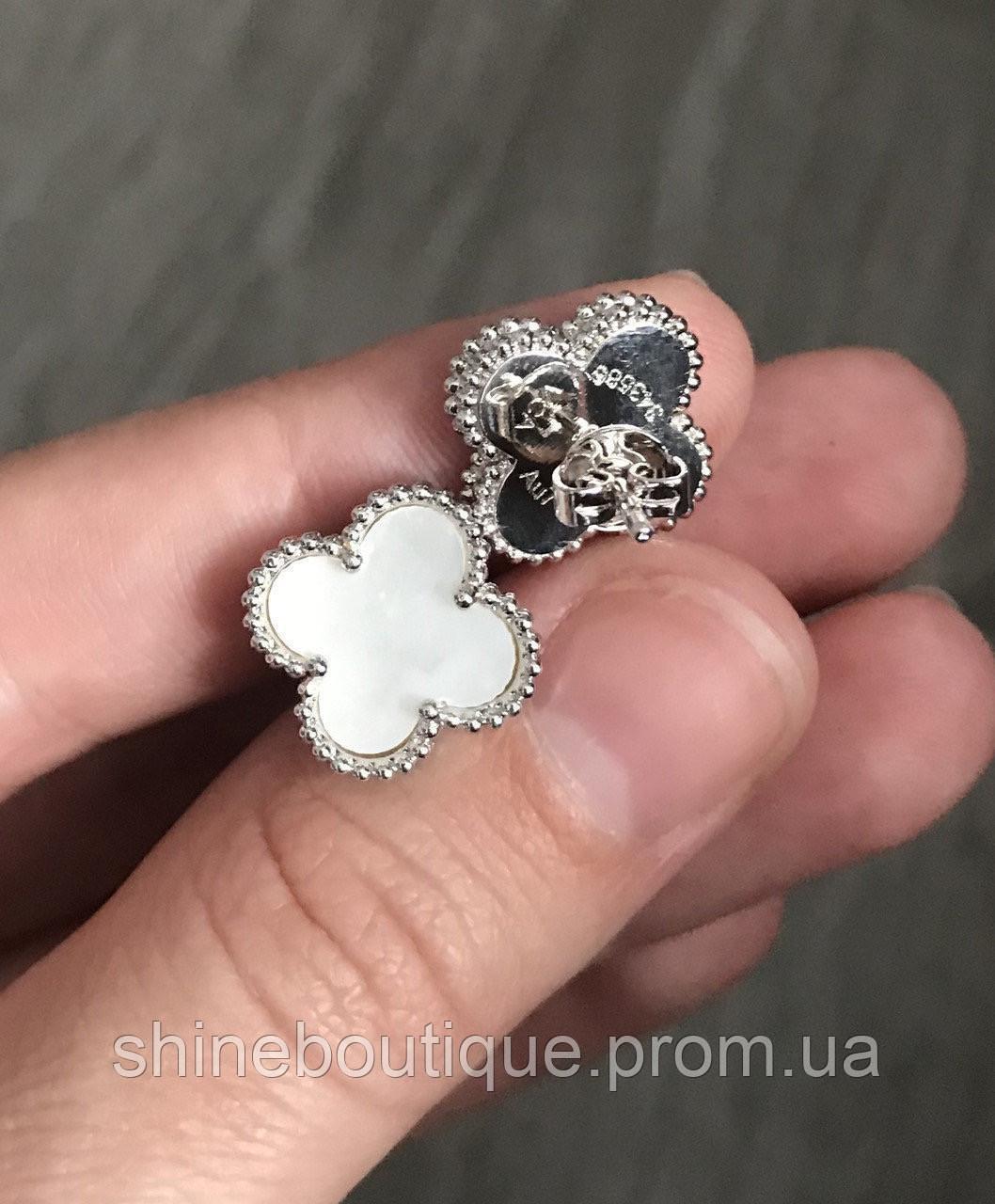 | Сережки клевер ван клиф брендовые листик гвоздик перламутр белый Шарики Van Cleef |