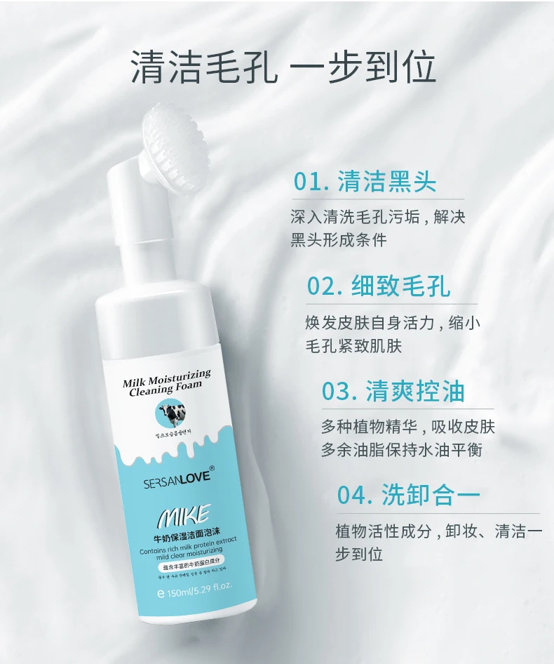 Пенка-мусс с щеточкой для умывания с протеинами молока Sersanlove Milk Moisturizing Cleansing Foam предназначена для ежедневного ухода за кожей любого типа, в том числе за чувствительной и склонной к аллергическим реакциям. Пенка дарит ощущение свежести, глубоко увлажняет, возвращает лицу равномерный здоровый оттенок и придает естественное сияние. Насыщенная и нежная пена делает кожу более нежной и гладкой после очистки, эффективно удаляет макияж, удаляет излишки жира и грязи с поверхности, восстанавливает влажность и поры кожи.