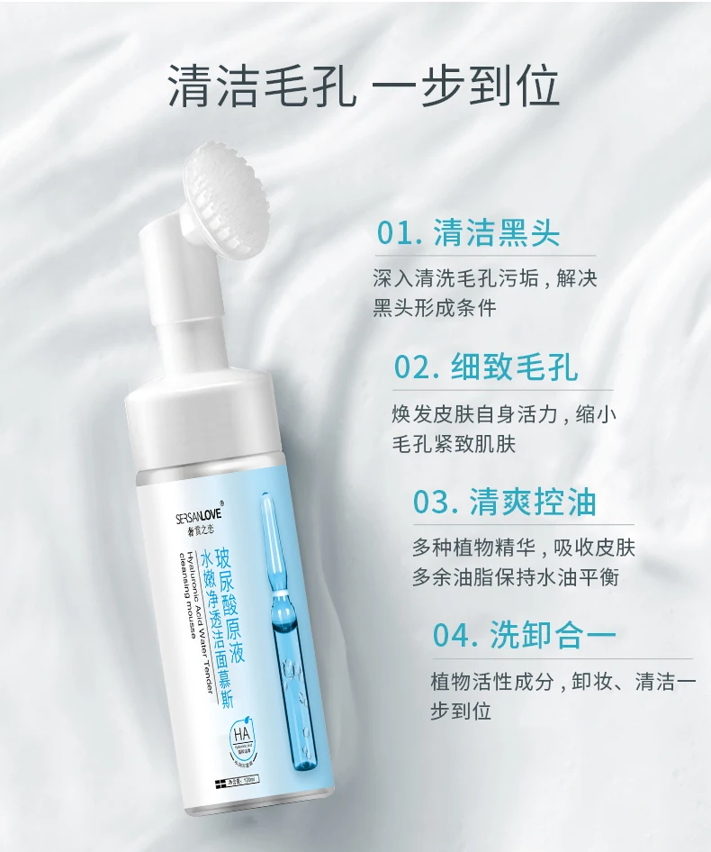 Пенка-мусс с щеточкой для умывания с гиалуроновой кислотой Sersanlove Hyaluronic Acid Water Tender Cleansing Mousse не только очищает кожу, а и увлажняет ее. Средство подходит для любого возраста и типа кожи, нормализует работу сальных желез, сужает поры и уменьшает высыпания. Насыщенная и нежная пена, беспрепятственное очищение кожи, делающая кожу более гладкой и подтянутой после очищения, эффективное удаление макияжа, смывание излишков масла и грязи с поверхности и пополнение влаги в коже, сглаживание пор и поддержание увлажнения кожи.