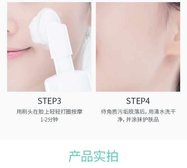 Умойтесь чистой водой и понемногу надавливая на кнопку насадки, массажными движениями пройдитесь по лицу 1-2мин. Смойте средство чистой проточной водой. Рекомендуется применять утром и вечером.