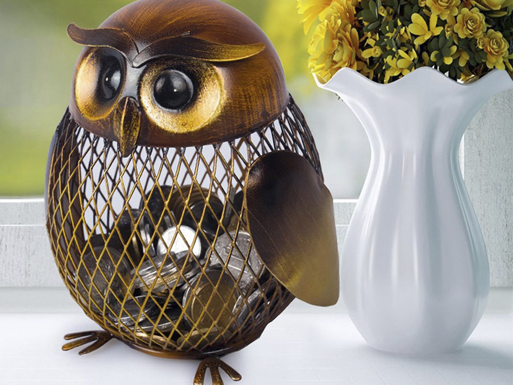 Совы выполнена из металла. Тело в сеточку и все сбережения будут видны.