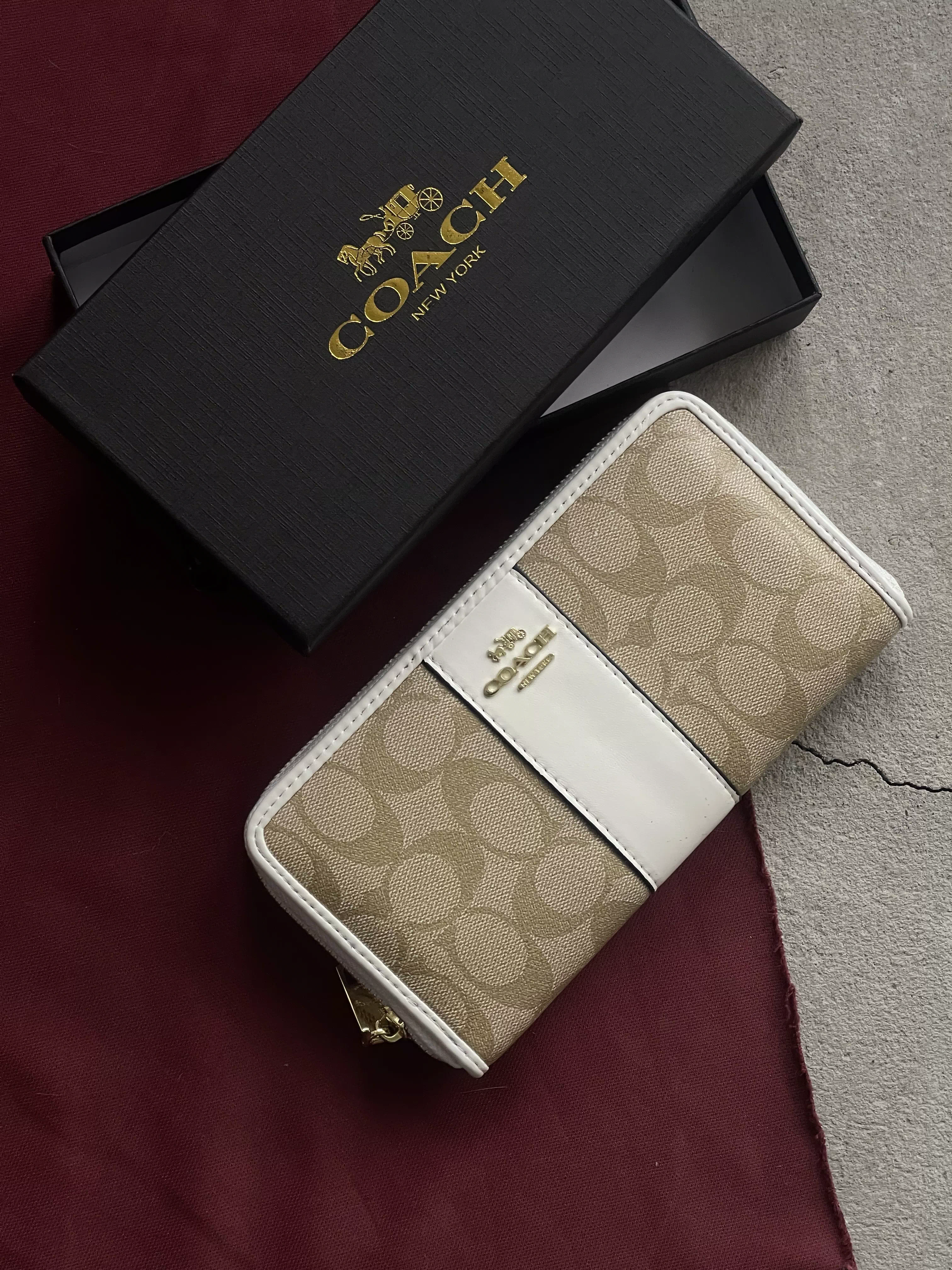 | Кошелек коуч брендовый большой с логотипом бежевый Эко-кожа Coach |