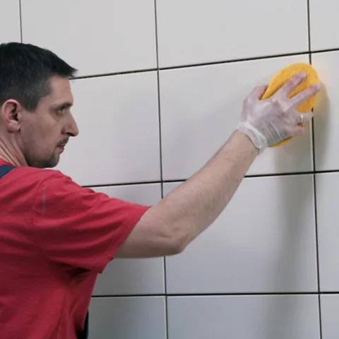 Растворной смесью с помощью резинового шпателя или терки заполнить швы между плитками. Через ≈ 15 мин. избыток материала собрать влажной губкой. Высохший налет снять с плиток сухой тряпкой. Передвижение по облицовке возможно через 24 часа. Не допускать увлажнения швов в течение 24 часов. Шов приобретает полную гидрофобность через 5 дней.
