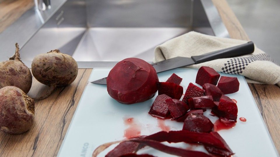 Высококачественная нержавеющая сталь BLANCO естественным образом устойчива к бытовым кислотам и пятнам, которые могут появиться при контакте с некоторыми пищевыми продуктами (например, кофе, чаем, фруктами и овощами).