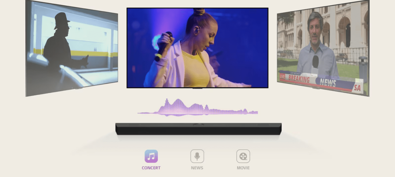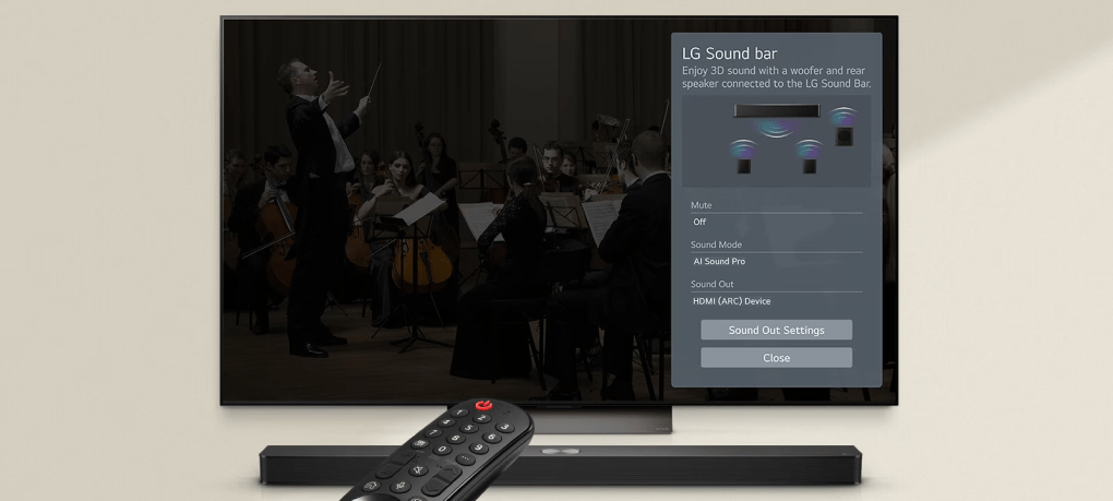 З LG TV доступ до інтерфейсу WOW дозволяє легко керувати звуковою панеллю, включаючи зміну звукових режимів, профілів та інших корисних функцій.