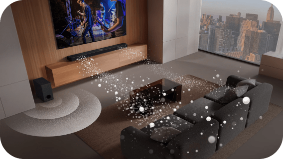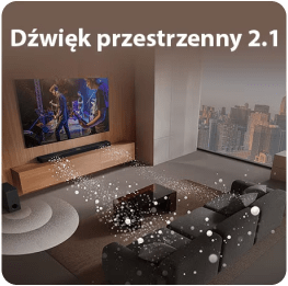 Станьте частиною події завдяки 2.1-канальному об’ємному звуку, потужності 300 Вт і сабвуферу, які разом створюють потужні та реалістичні звукові пейзажі.