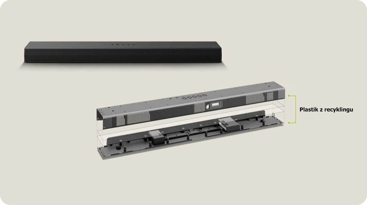 У верхній і нижній частині звукових панелей LG використовується перероблений пластик. Це доказ нашої прихильності до екологічного підходу до виробництва та турботи про навколишнє середовище.