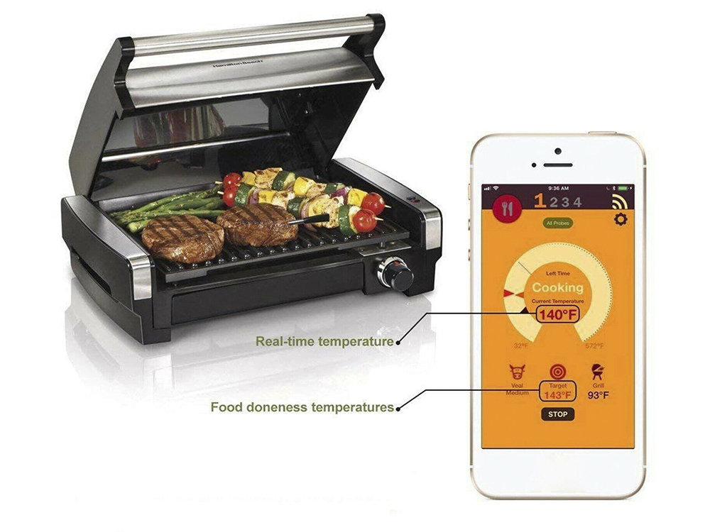 Соединение со смартфоном по Bluetooth. Вам надо будет только установить приложение Gril ProbeE. Эффективное расстояние передачи 30 метров, а внутри печи 15 метров.