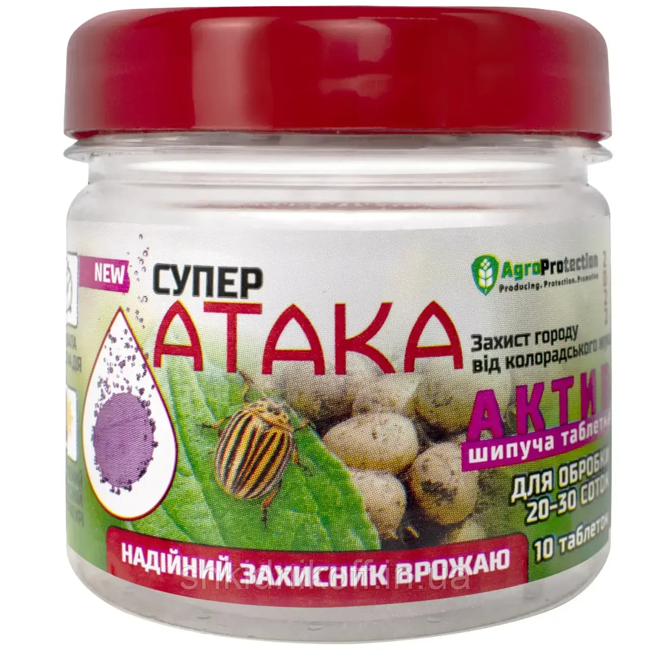 Инсектицидное средство Супер Атака актив в форме шипучих быстрорастворимых таблеток, применяется для защиты комплекса сельскохозяйственных культур от колорадского жука и других трудновыводимых насекомых-вредителей на приусадебном участке.