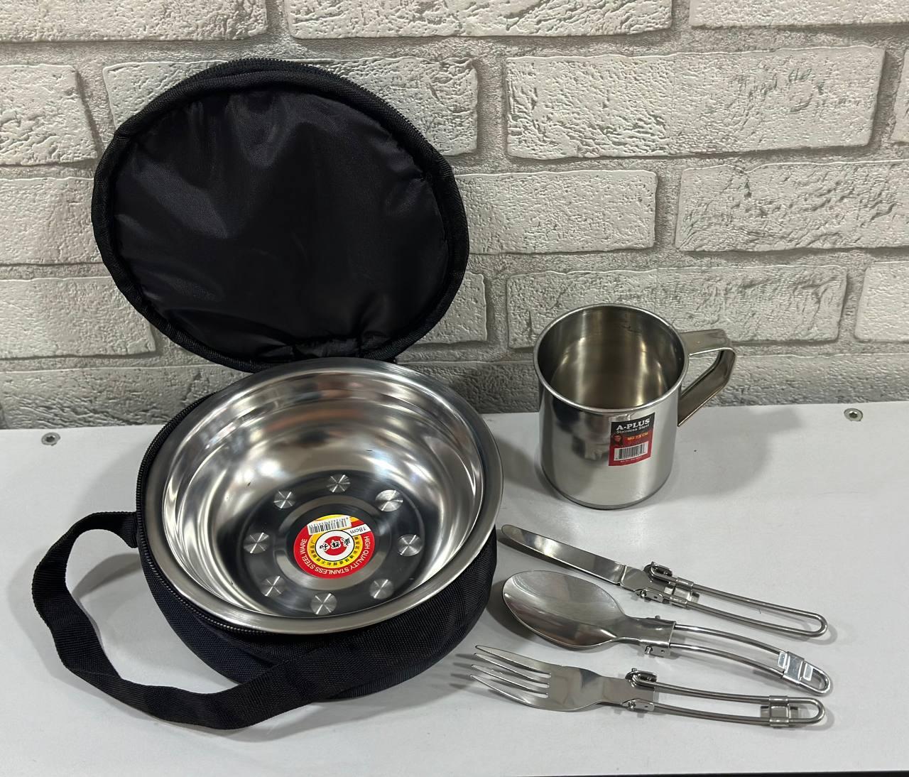 Комплект посуды для одного человека складные приборы + сумка Черная нержавеющая сталь CI-88