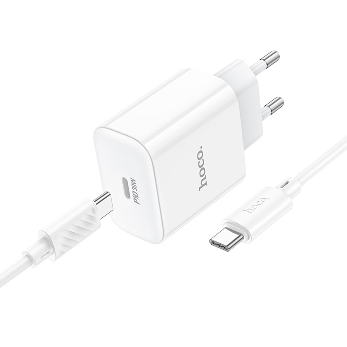 Сетевое зарядное устройство HOCO C76A Pro Majestic single port PD30W Charger Set (Type-C to Type-C)(EU) WhiteСетевое зарядное устройство HOCO C76A Pro Majestic оснащено портом Type-C для эффективной зарядки ваших девайсов. Он совместим со многими современными устройствами: повербанками, смартфонами, планшетами, акустическими системами разных производителей. Максимальная выходная мощность адаптера составляет 30 Вт. Имеется поддержка протоколов быстрой зарядки PD30W, PPS, QC3.0, FCP, AFC. Корпус из ABS-пластика и поликарбоната не только придает стильный вид, но и обладает огнестойкими свойствами, что делает его безопасным в использовании. Компактный размер (81×42×27 мм) гарантирует, что зарядное устройство будет вашим надежным спутником в любом путешествии, обеспечивая быструю и эффективную зарядку ваших любимых гаджетов, где бы вы ни находились. Высококачественные материалы и производственные стандарты обеспечивают долговечность и надежность зарядного устройства. В комплекте с зарядным устройством поставляется качественный и удобный кабель Type-C to Type-C длиной 1 м, чтобы вы могли сразу приступить к зарядке устройств.