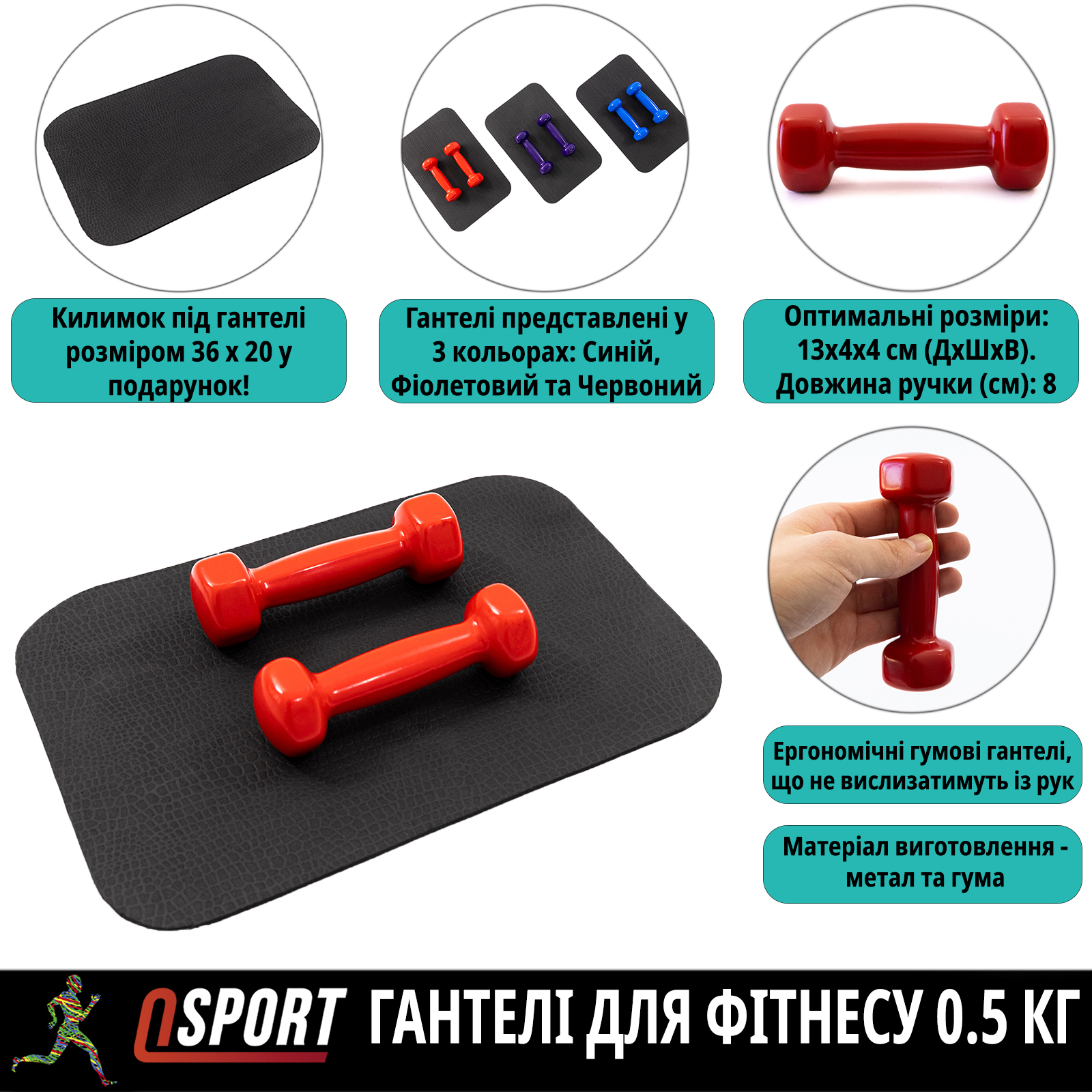 Обратите внимание! Коврик под гантели может быть разных цветов.,