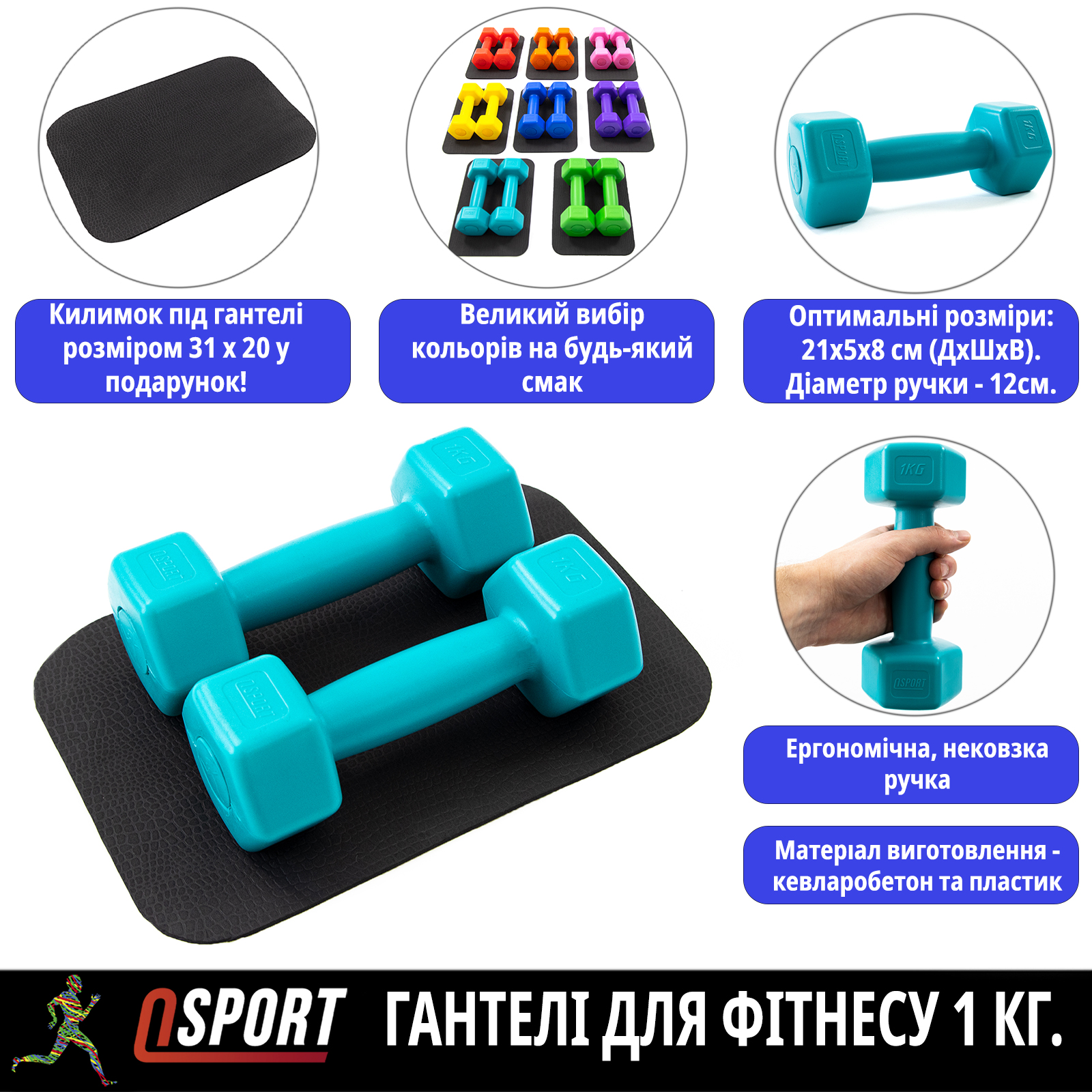 - Комплектация: Гантели 2 шт + коврик