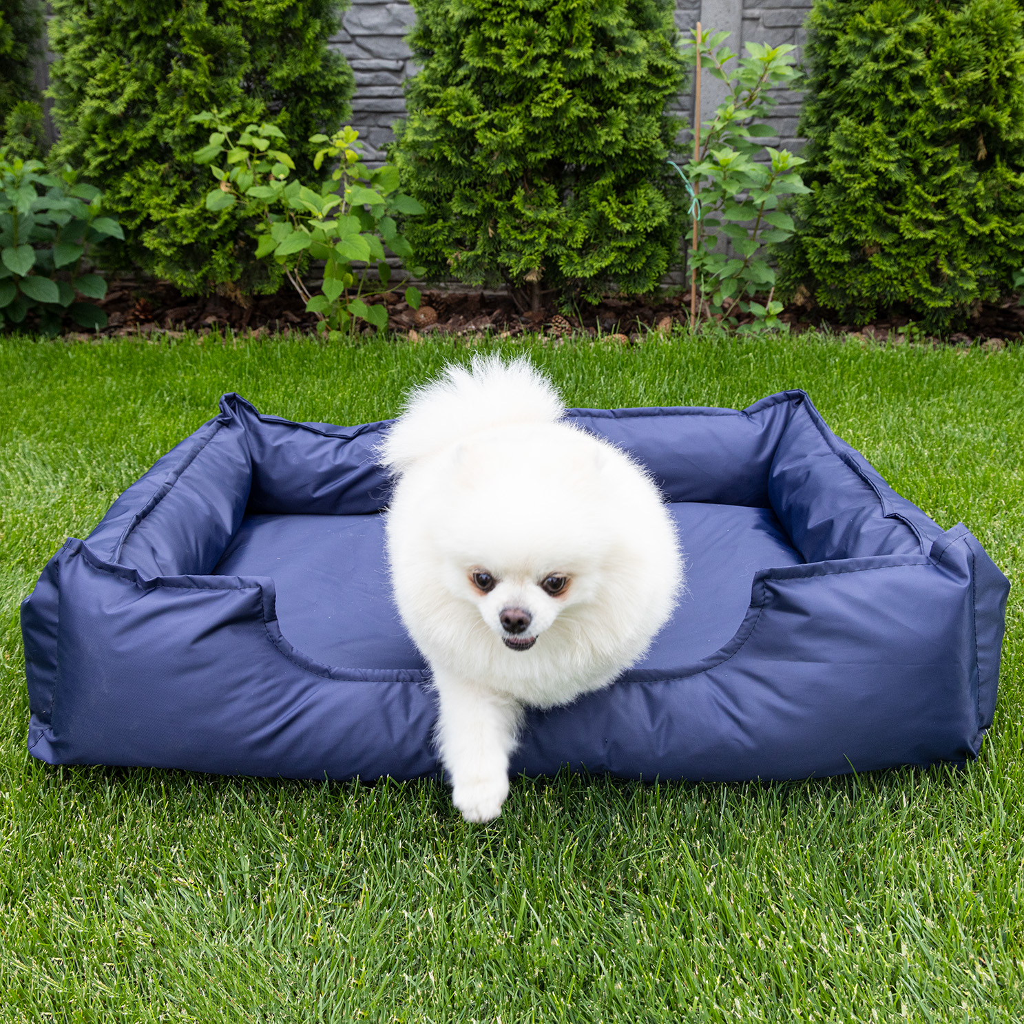 Материал лежака легок в уходе. К лежаку не пристает шерсть, а влагоотталкивающая ткань не впитывает грязь, воду и слюну питомца. Достаточно просто протереть его влажной тряпкой или губкой. В данной модели на подушках находятся молнии, с помощью которых можно отстегнуть чехол и постирать его в машинке
