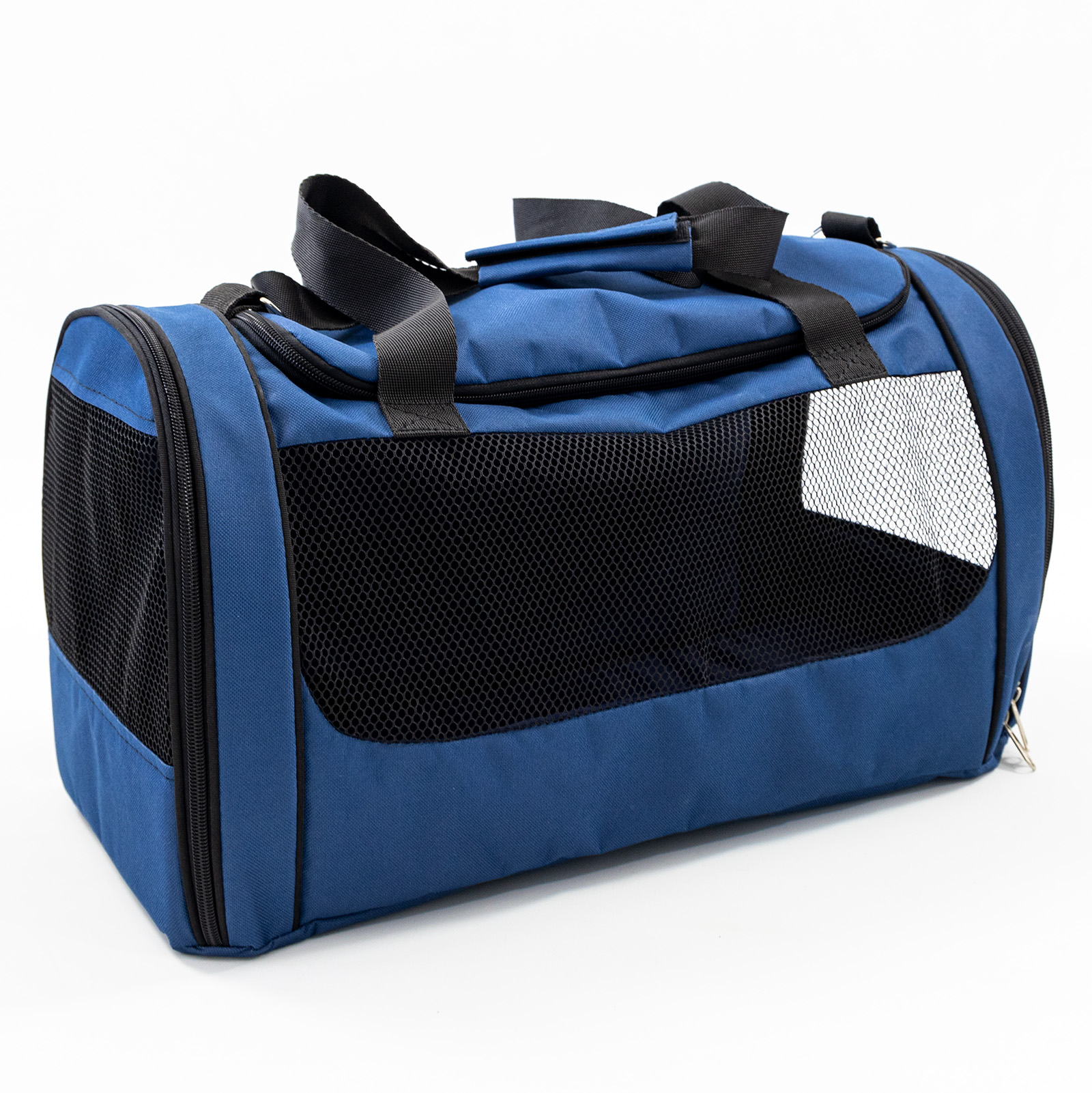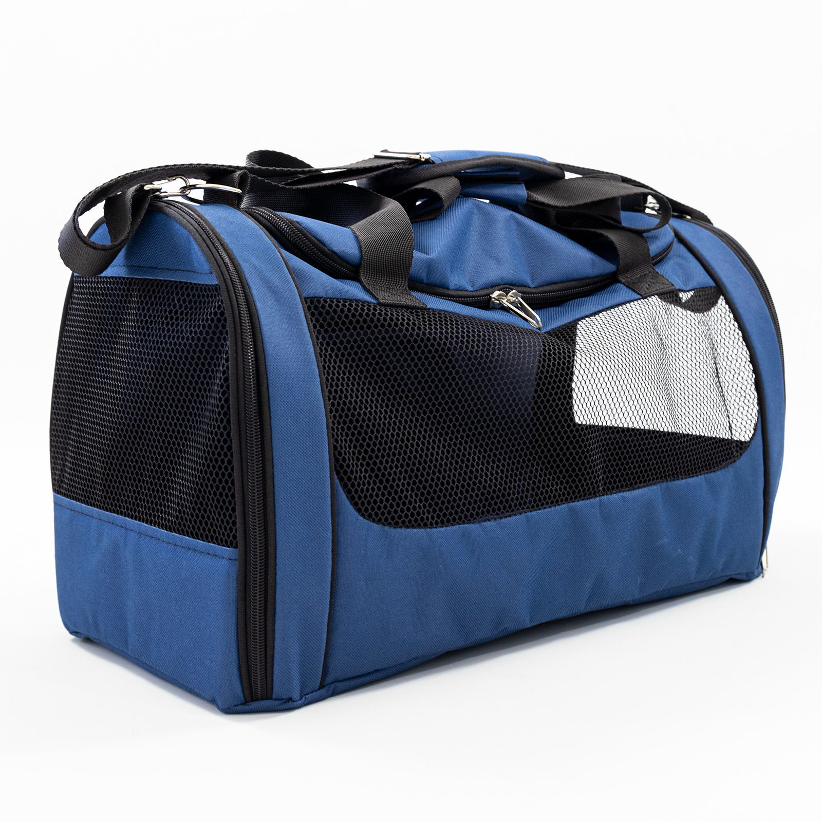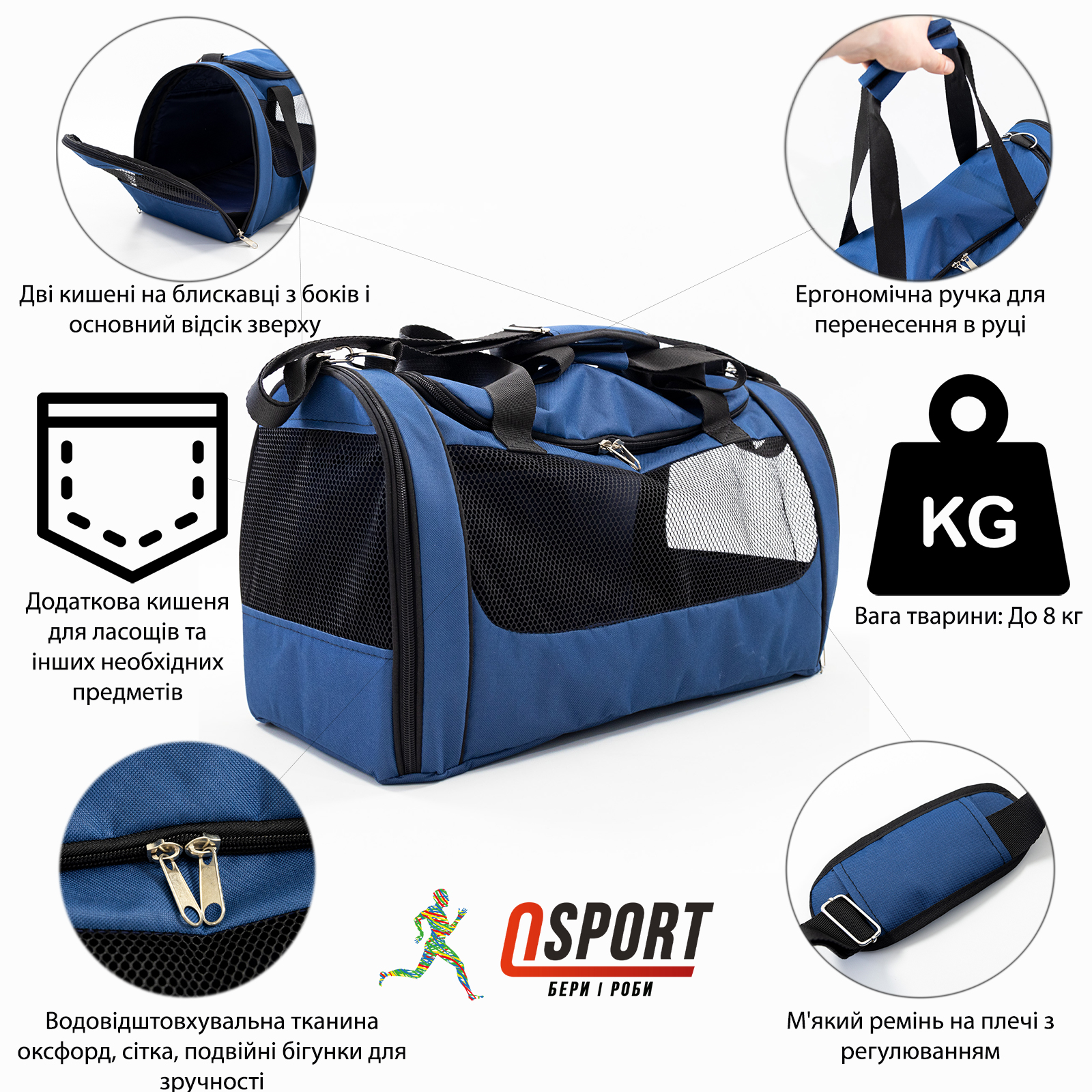 ,Сумка для переноски животных Faina Torba - идеальный вариант для транспортировки домашних любимцев. Беря с собой своего домашнего питомца вы можете быть уверенными в том, что ему безопасно и комфортно. Сумка с усиленным дном, также оснащена сеткой по периметру, что предоставляет животному свободный доступ к кислороду. Удобные ручки с липучкой для переноски в руках и мягкий наплечный ремень с регулируемым размером. Для удобства питомца можно садить и вытаскивать разными способами: два кармана на молнии по бокам и основной отсек сверху. Также на внешней части сумки есть дополнительный карман для лакомств или других необходимых предметов. Сумка сделана из водоотталкивающего материала Оксфорд, что сделает ее безопасной для переноски и легкой в уходе, достаточно протереть влажной губкой.