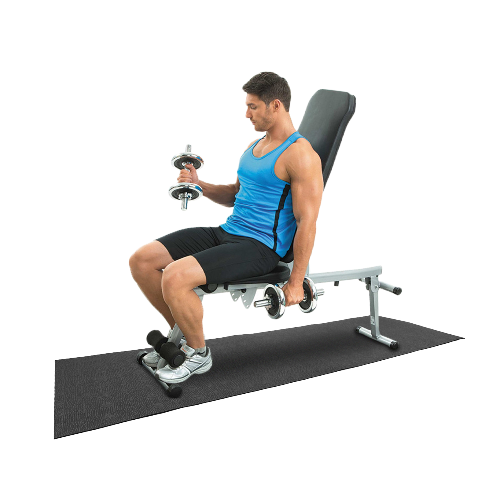 ,Данная модель коврика защищает поверхность пола от вмятин и царапин, создает дополнительную шумо- и вибро- изоляцию, легко очищается и защищает пол от загрязнений и пятен, снижает вибрацию от тренажера. А если вы раньше практиковались в йоге, пилатесе или других видах фитнеса, и сталкивались с проблемой нехватки места на коврике - эта модель специально для вас. За счет стандартных размеров 180х60х0.4 см у вас будет не только коврик, который можно подложить под тренажер для защиты пола, но и полноценный каремат для тренировок.